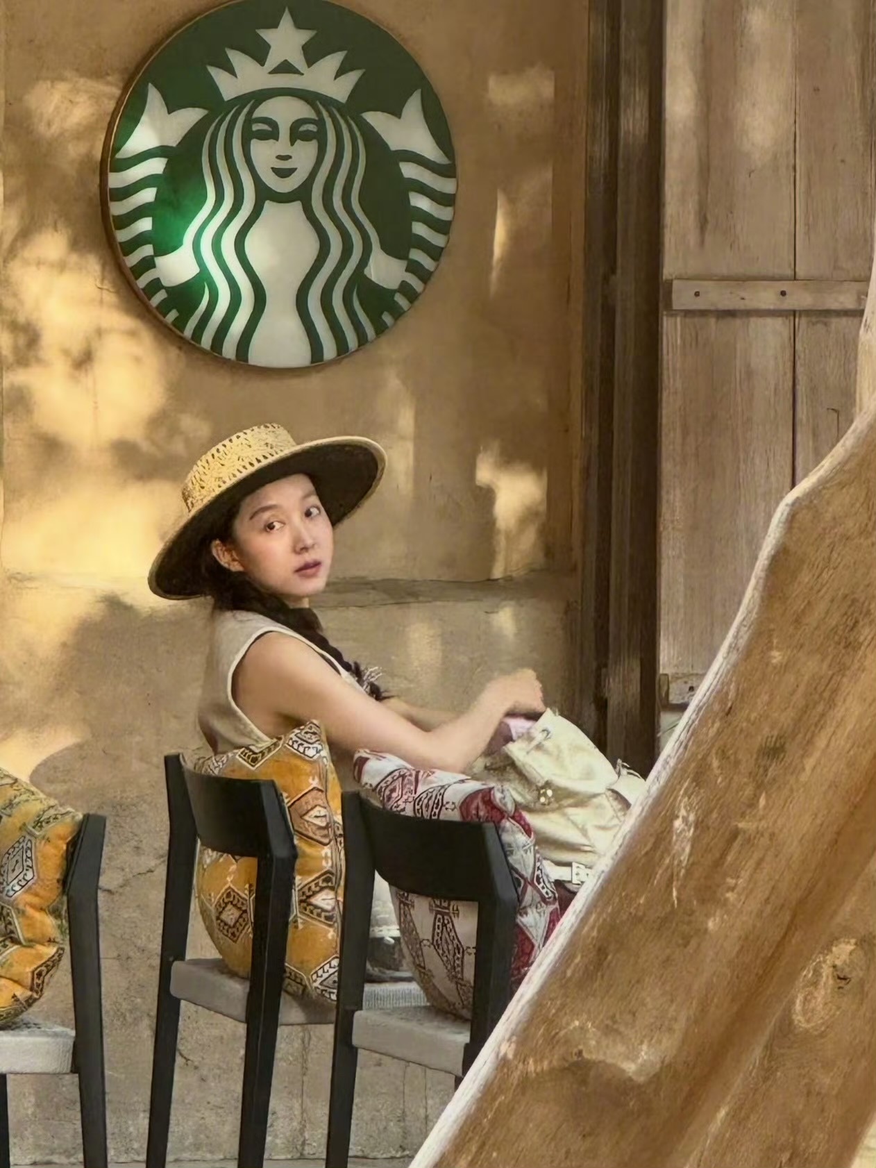 张天爱跟素人合影,胯真的好宽,大宅院似的