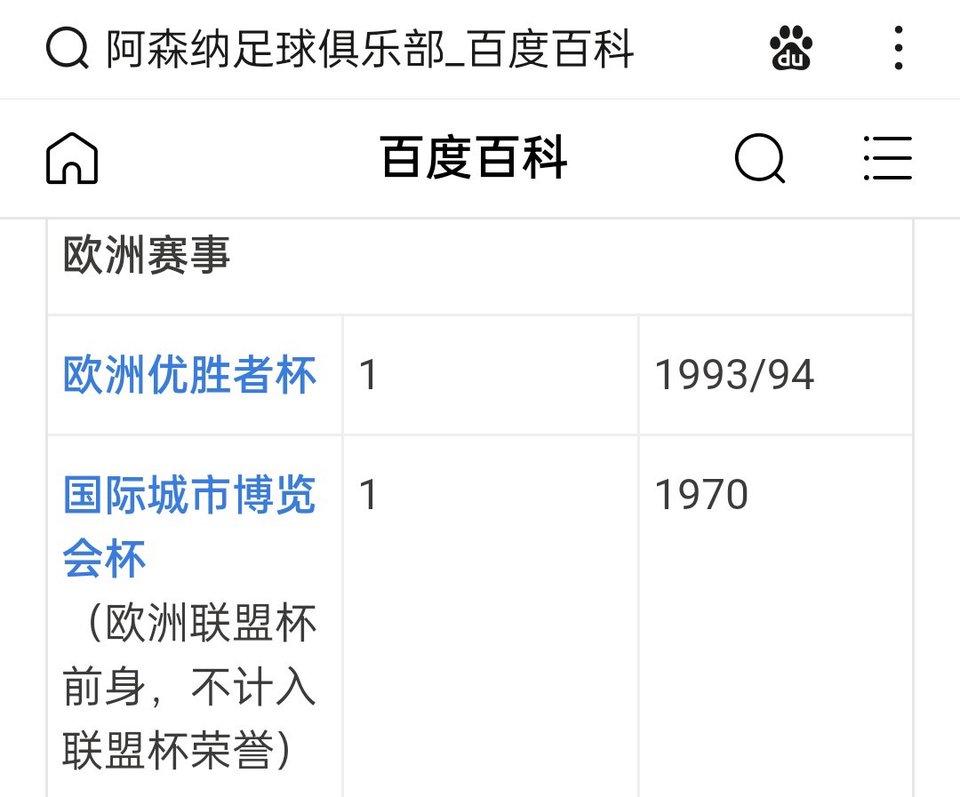 阿森纳的欧冠成绩在豪门里面垫底。 欧冠没拿过,欧联杯没拿过,最近几年刚出来的欧协联没有。 只是有一个消失的欧洲优胜者杯冠军。 马竞还有三次欧冠亚军,阿森纳是一次。 他们还是欧冠参赛场次最多,却没有一个冠军的队。 所以巅峰阿森纳不拿欧冠,豪门荣誉不及格。[震惊]