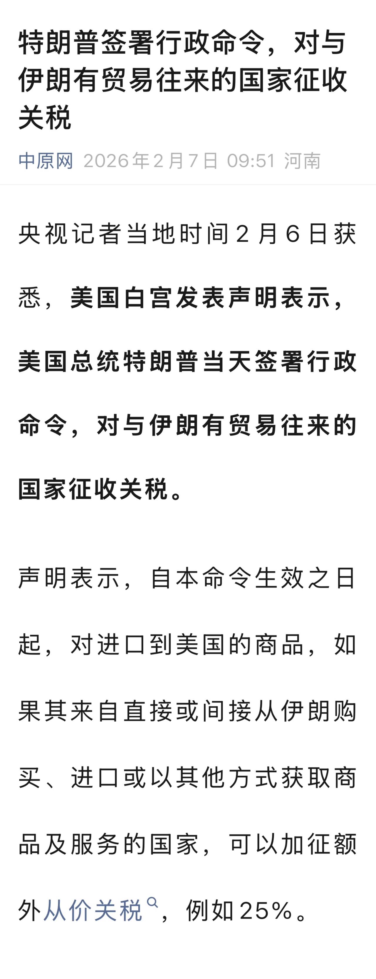 特朗普说,美国和伊朗2月6日在阿曼举行间接对话,双方就伊朗问题进行了“非常好的会谈”,并指出下周初双方将再次进行谈判。 特朗普说伊朗想达成协议。“我们有大量时间”达成协议。并重申伊朗不能拥有核武器。