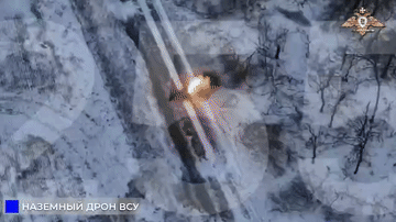 鲁辛亚尔附近,一辆乌军无人地面车辆在雪道上飞奔,给前线送温暖,恰好被俄军近卫第8集团军第20摩步师第255团的FPV飞手发现,一架就把它炸趴窝了,这种没有防护的小车实在是太简单了。附近乌军要饿一段时间肚子了。