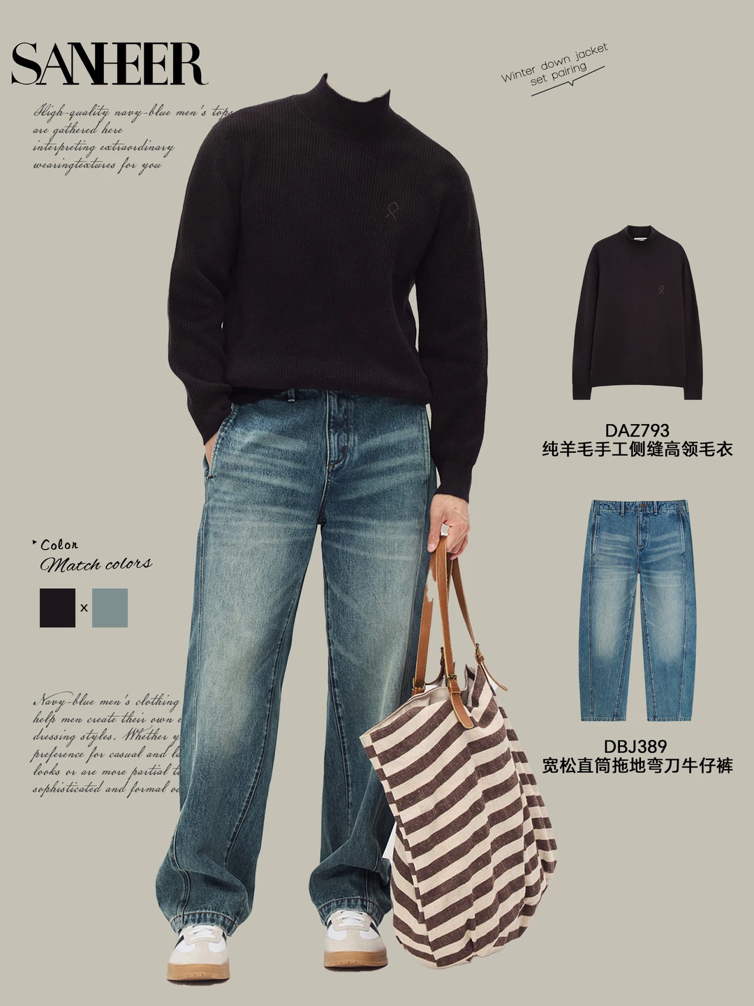 ▪️穿搭:纯羊毛高领毛衣 + 可调节直筒长裤