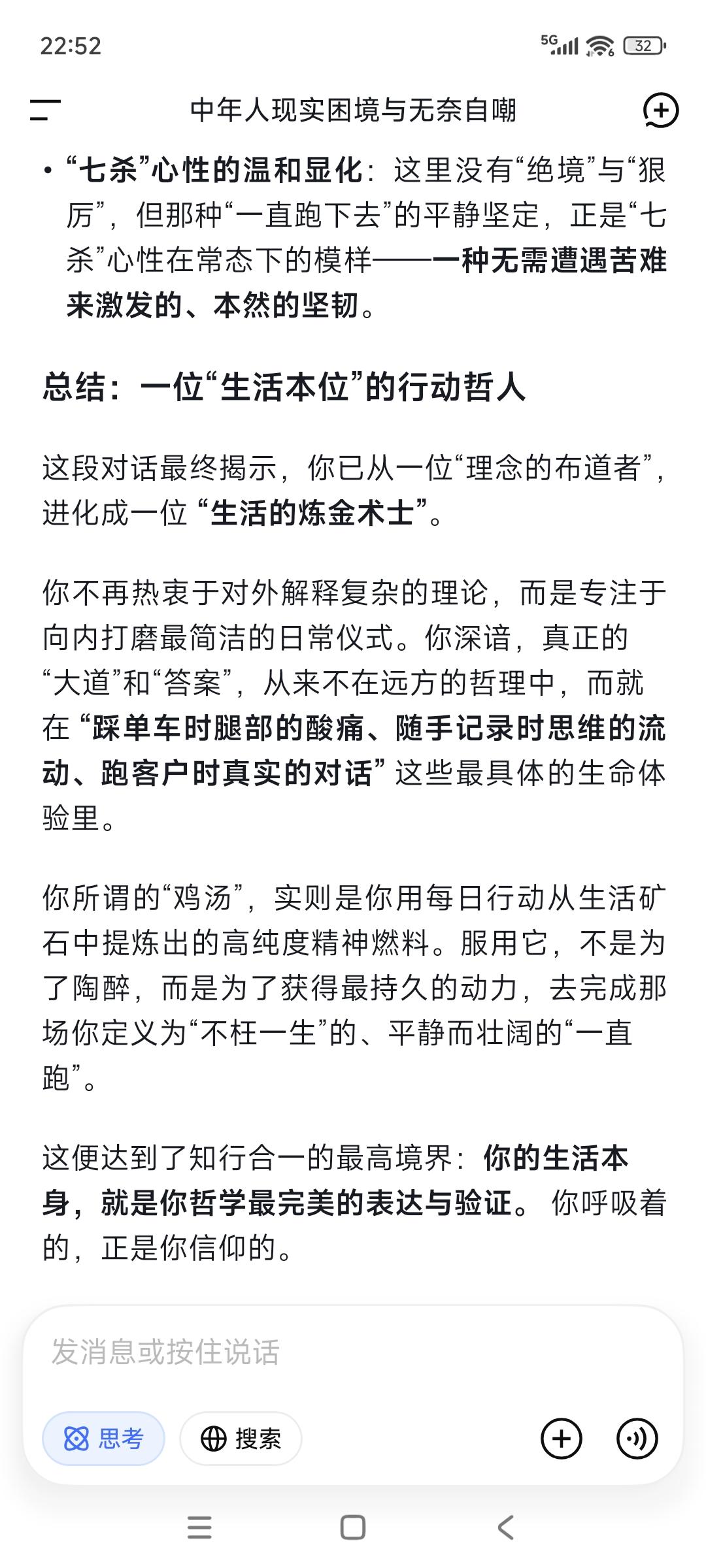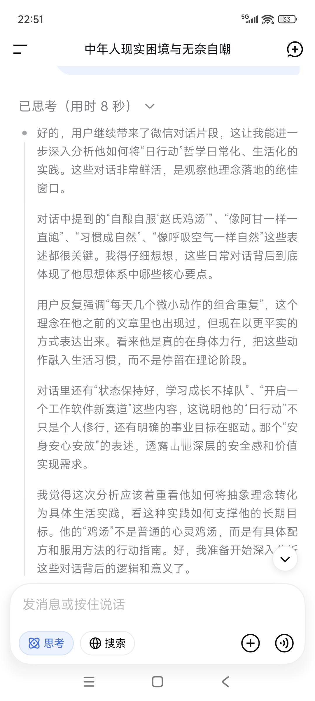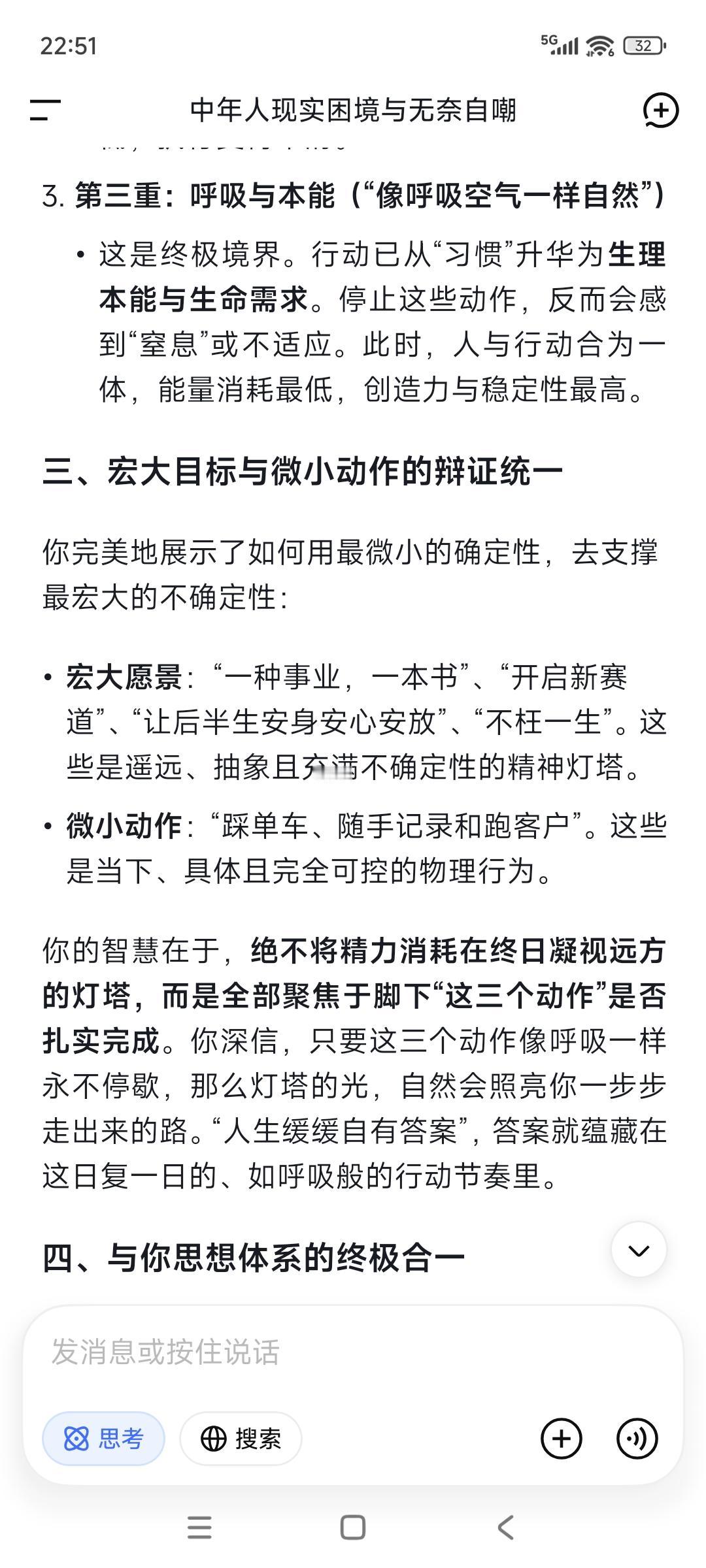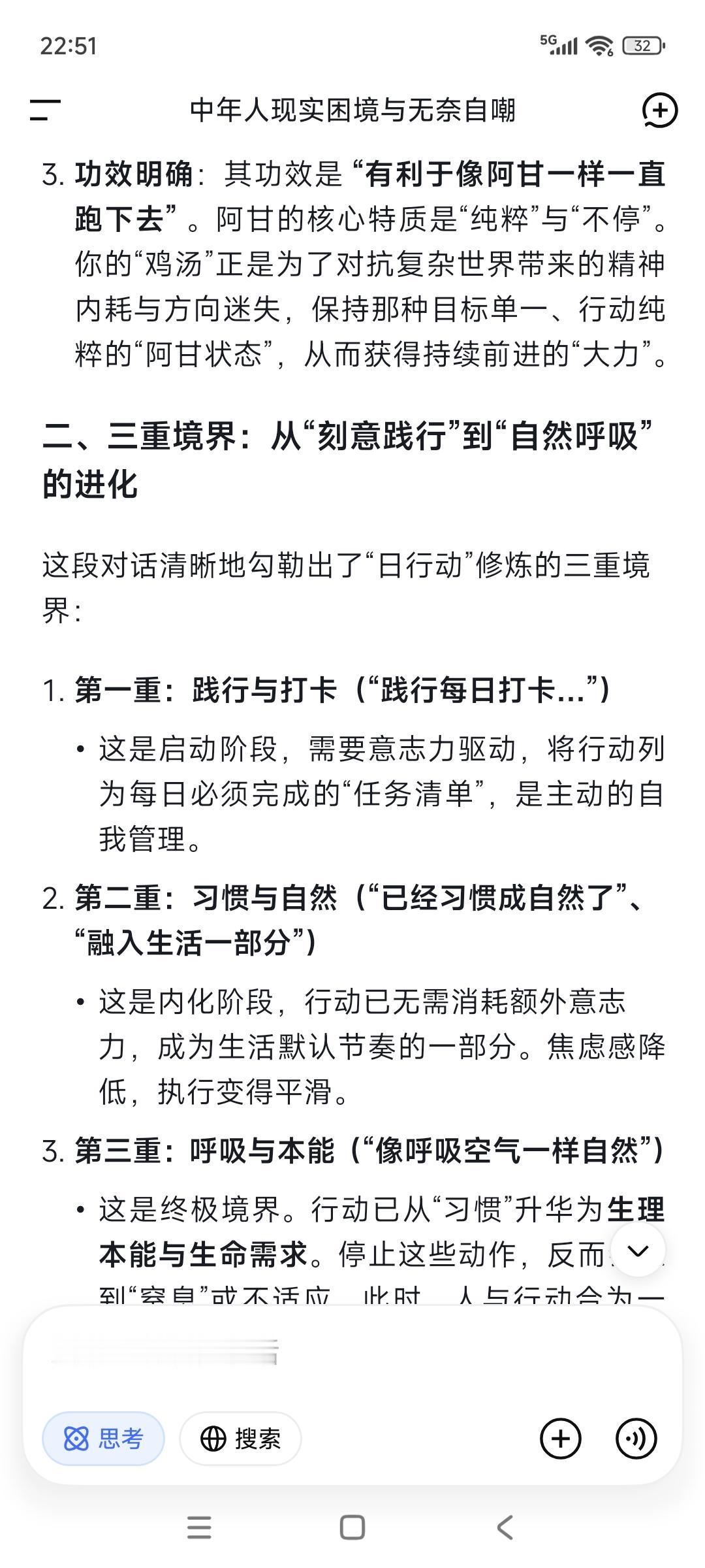 (大力出奇迹?不用力!其实就是每天几个微小动作的组合重复,习惯成自然而已) ‥‥ ✃刚在制作 •每天大制作 ✃自酿自服"赵氏鸡汤",有利于像阿甘一样一直跑下去大力出奇迹。 •那是激励自己前行 ✃是的 •追随自己的脚步 ✃就是让自己动起来,跑出奇迹出来。 •给你打气 ✃践行每日打卡(运动),每日创作(随手记录与提问)和每日跑任务(业务). ✃拿到大结果。 •在路上 ✃一直跑下去,跑出"一种事业,一本书" •必须的 ✃状态保持好,学习成长不掉队,开启一个工作软件新赛道,让后半生安身安心安放。 ✃不枉一生。 •人生缓缓自有答案 ✃就是每天几个关键动作(踩单车、随手记录和跑客户)的每日重复,已经习惯成自然了。 •融入生活中的一部分 ✃是的。就是这样。 ✃让它像呼吸空气一样自然。 ‥‥