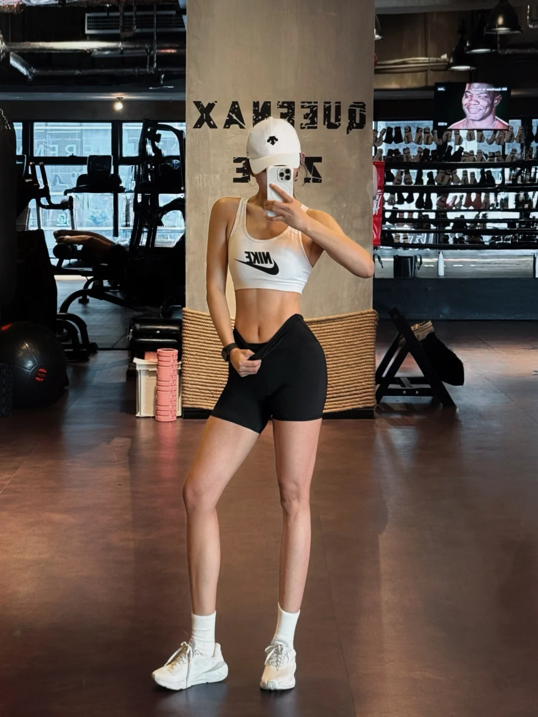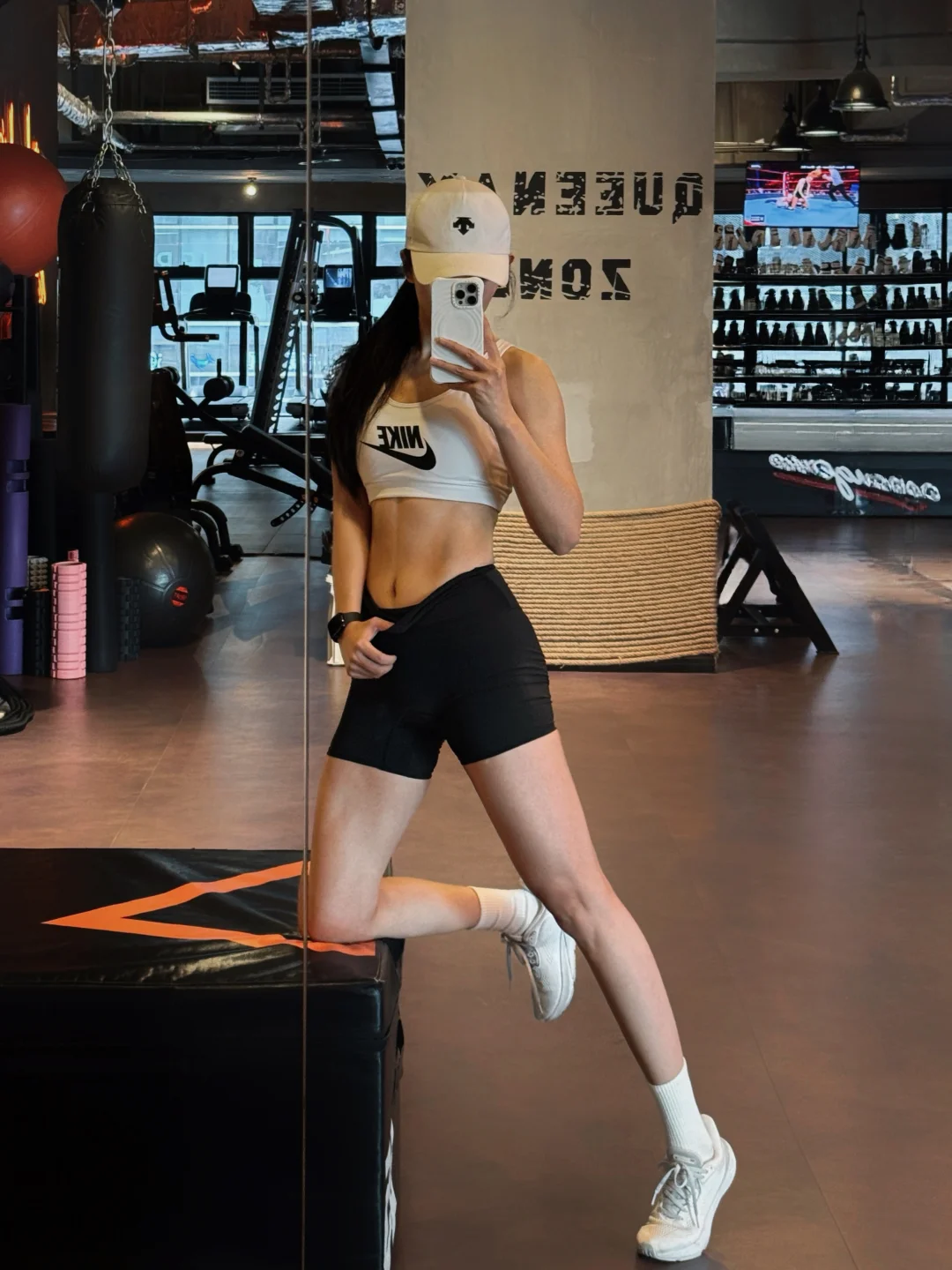 健身穿搭 薄肌 健身女孩 健康有力量 高个子女生 走进力量区女孩 对镜自拍 运动万粉助力计划 大长腿 健身的意义不止于减肥
