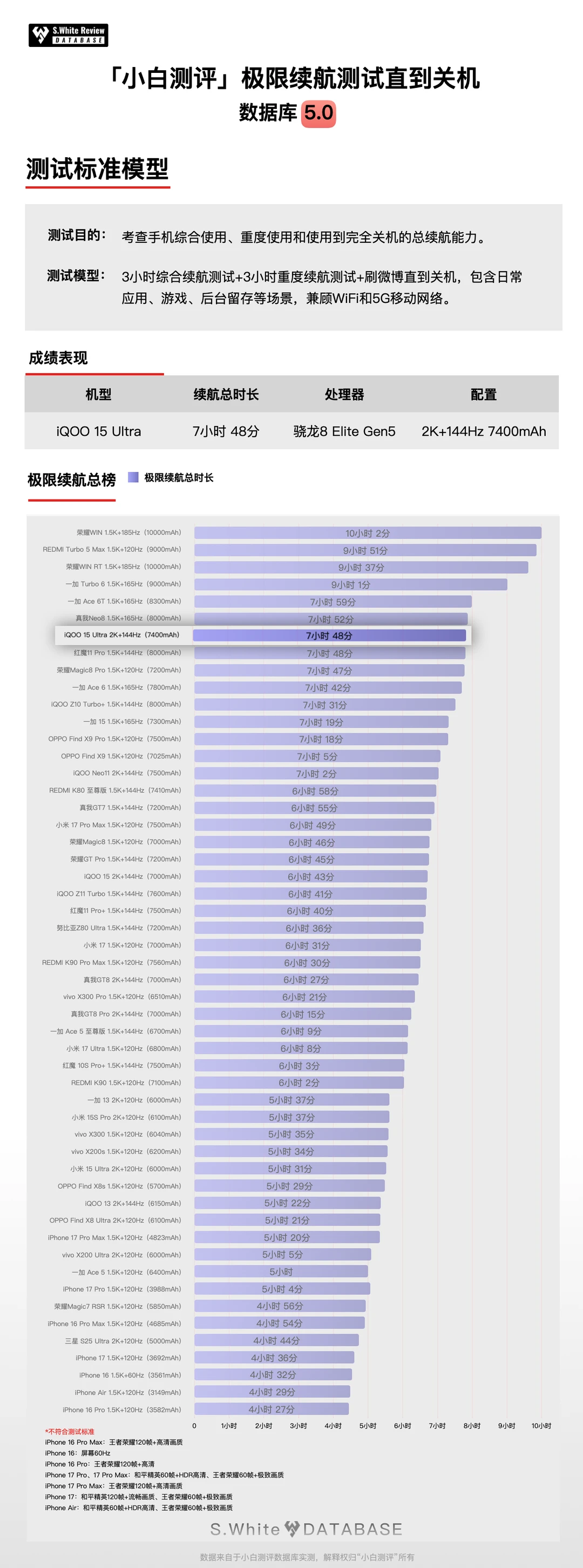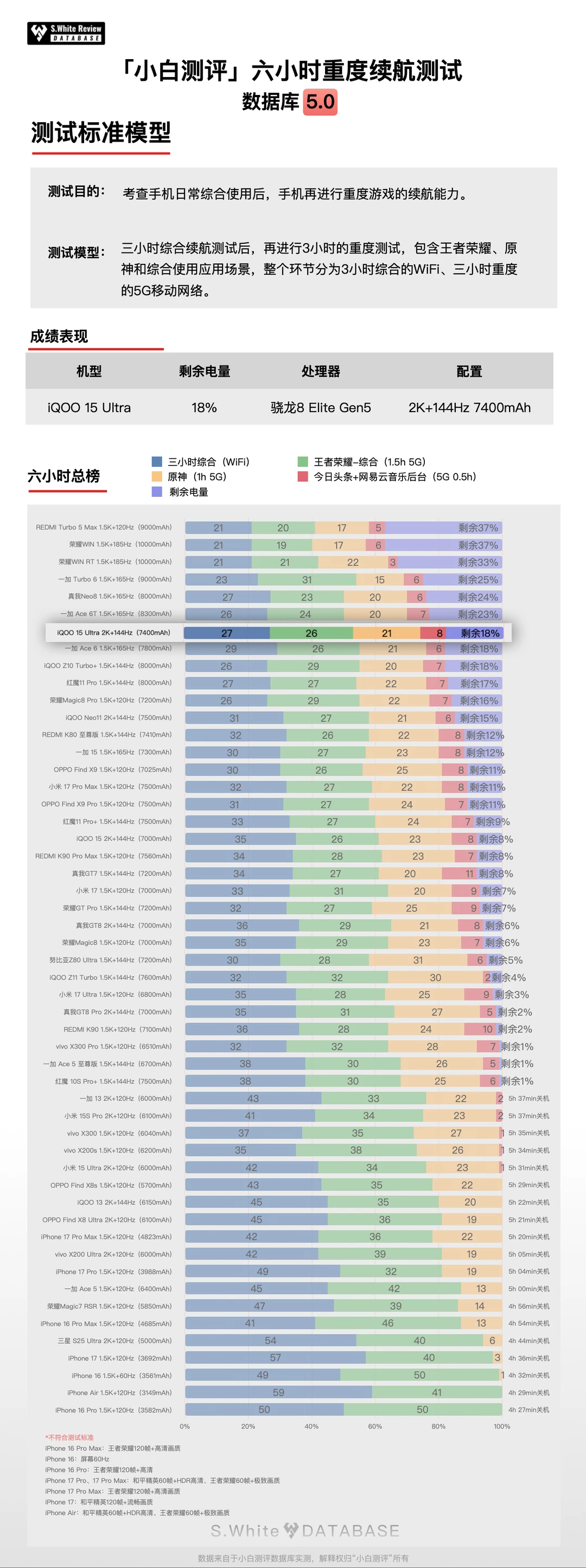 小白测评数据库续航榜更新部分机型复测成绩