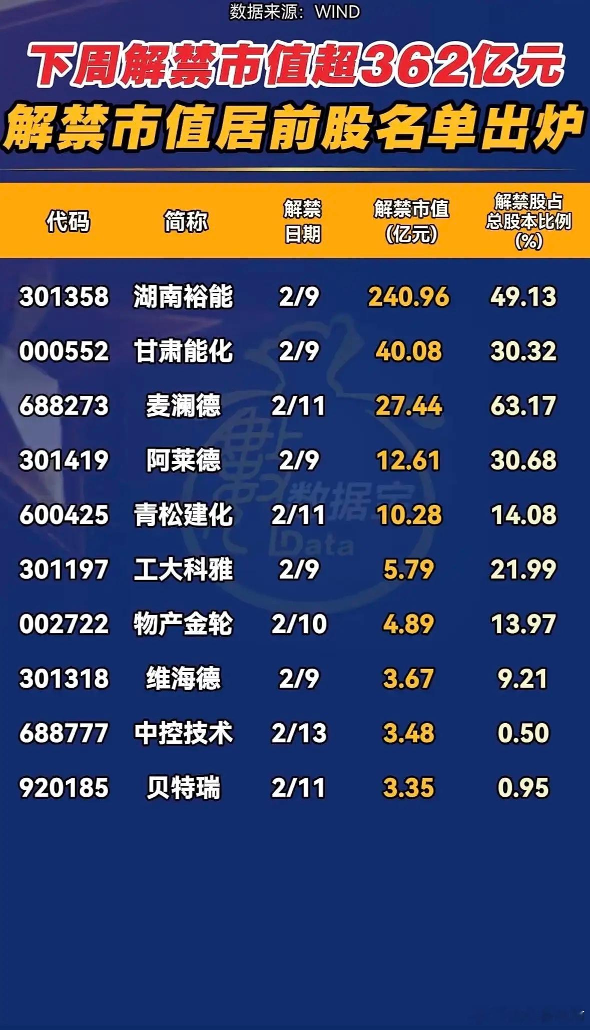 下周股市解禁潮来袭,多只个股面临压力,投资者需警惕风险!