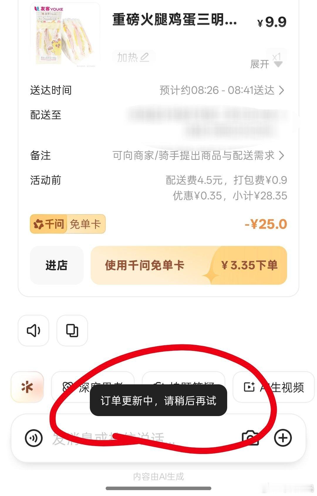 还寻思试试用一下千问送的免单卡点个早餐吧,结果一直使用不了