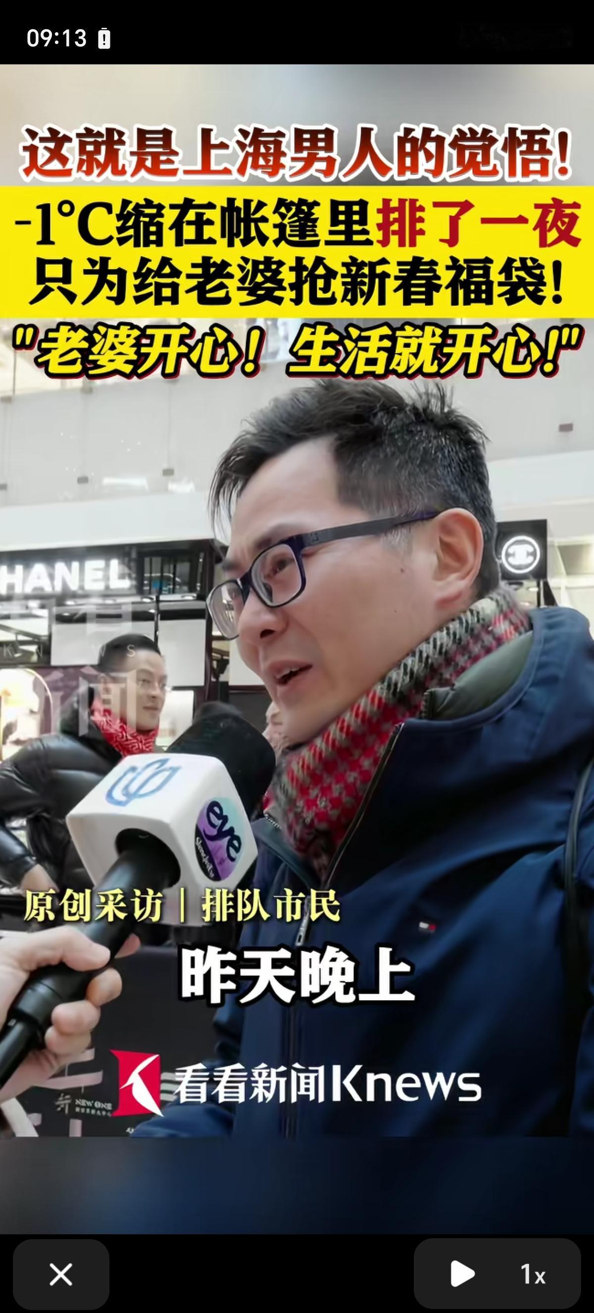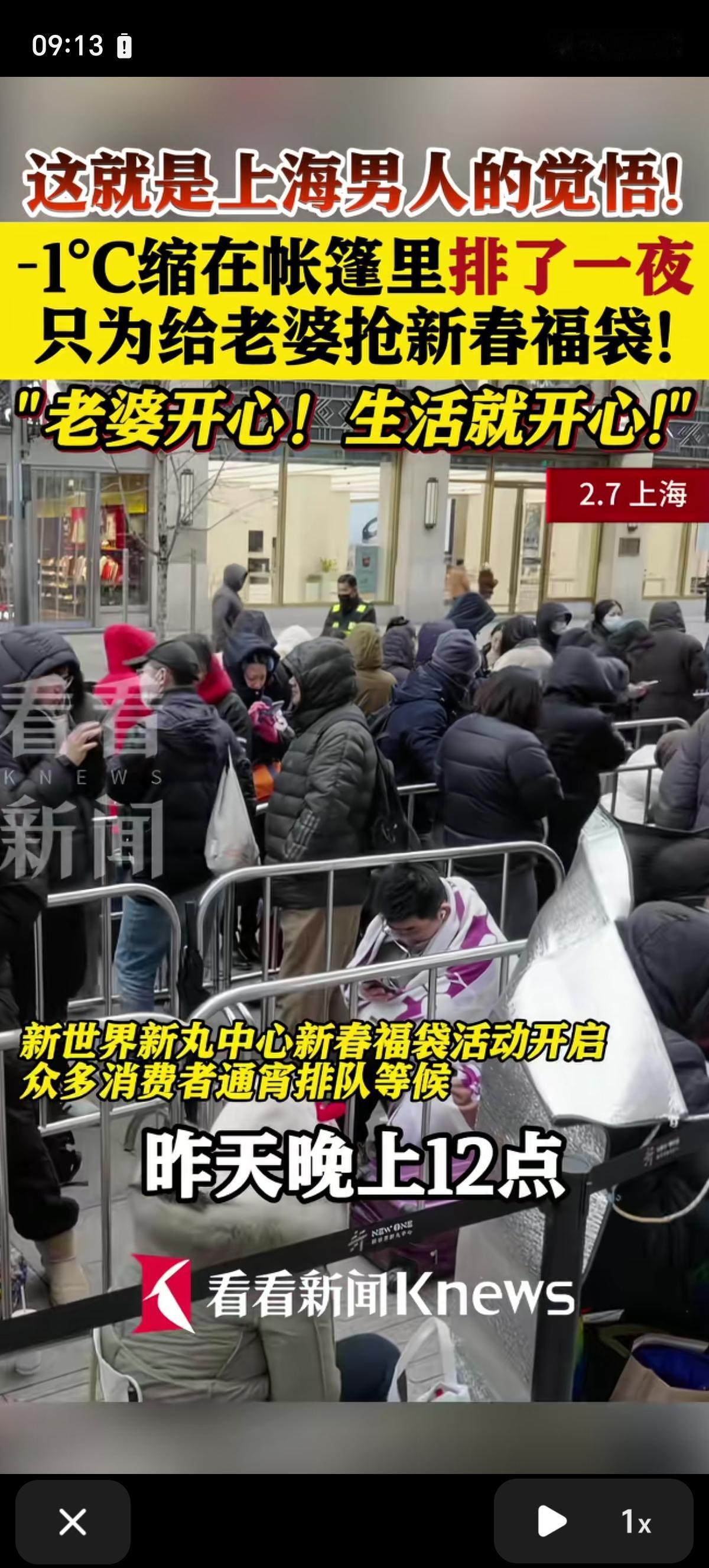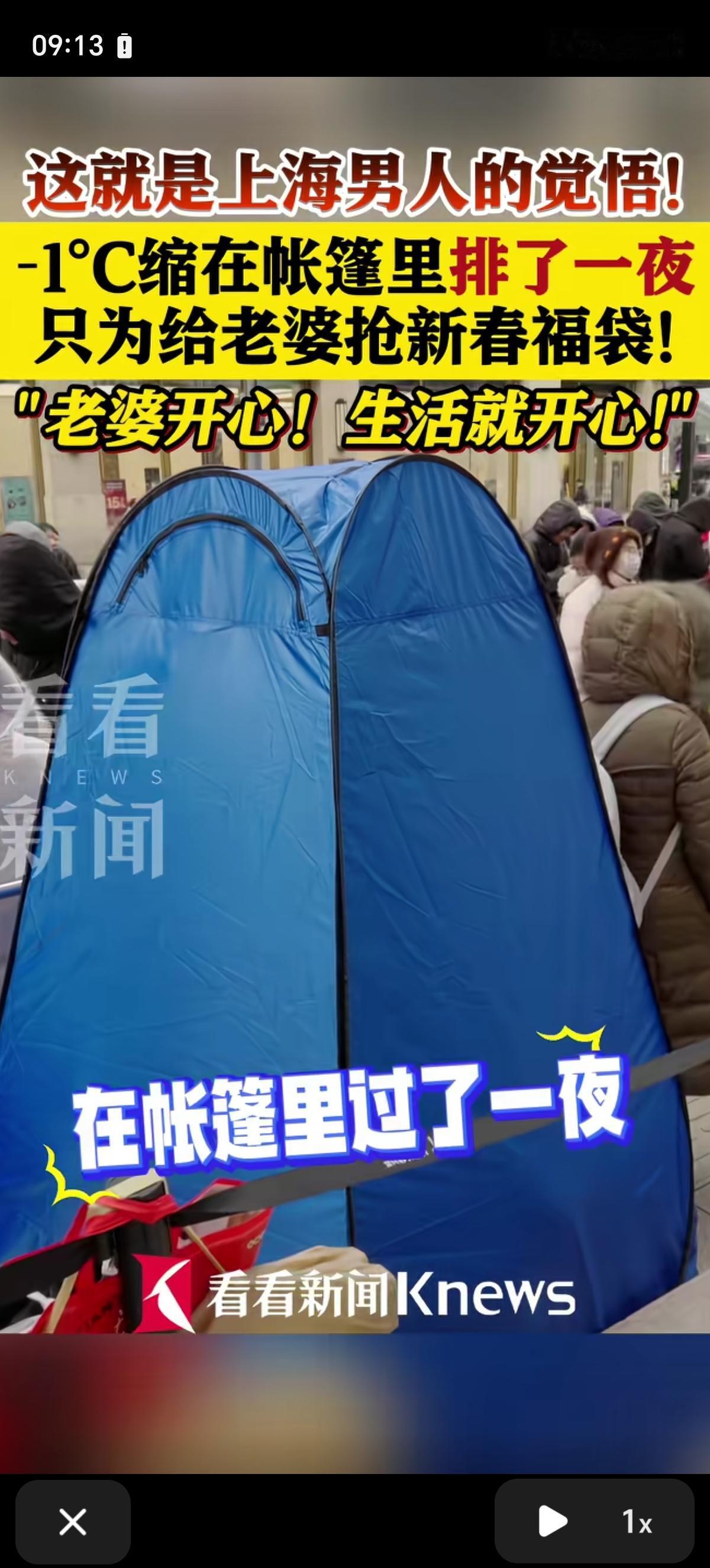 上海男人觉悟这么高吗?-1℃的环境里缩在帐篷里从晚上12点开始排队,辛苦排队一夜,只为了给老婆抢新春福袋!我的天呐! 其中一个男士回答:“老婆开心,生活就开心,帮家里领导抢福袋,领导开心就行”。 还有男士回答:“昨天晚上12点到这里排队的,昨天晚上在帐篷里过了一夜,买到点老婆喜欢的化妆品,挺好,挺高兴。” 这是真的吗?简直不可思议,不得不感叹一句,好男人都是别人家的。