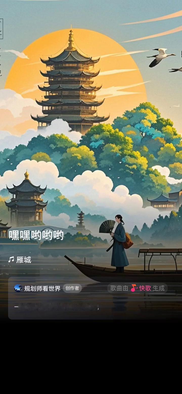快歌生成。 规划师看世界创作者。 一起来听听我创作的歌曲吧。 故事说:雁城有独特脉络,三山五岳它有一席之地。湘江之水藏着童年的记忆,上游湘江血战历史铭记心底。母亲河的故事永远在传递,衡阳城市保卫战写进历史书籍。一只雁儿引发无尽深思,山山水水水帘洞山岳多壮丽。点点石鼓书院点石响传奇,来来回回回雁峰回雁渐稀。风风雨雨雨母山风歌唱,西西东东东洲岛西城榜样仍强。往往来来来雁塔来雁会更旺。 故事说:雁城有独特脉络,三湘四水衡州留下一串史迹。湖湘湘江评论母亲河声威远及,抗战纪念地英魂在忠烈祠栖。排大雁引颈远方飞翼,大大小小小上海大是大非叹。山山水水水帘洞山脉美名扬扬,击击石鼓书院击石鼓敲响响。来来回回回雁峰回雁渐淡,风风雨雨雨母山风要唱。西西东东东洲岛西城榜样仍强。往往来来来雁塔来雁会更旺。 故事说:雁城有独特脉络,三江六岸续写史诗篇章。大城小爱每条路都很坦荡,雁城有雁城独特的地方。这歌声这儿传唱。 更多精彩内容上快歌,快歌用音乐表达生活。