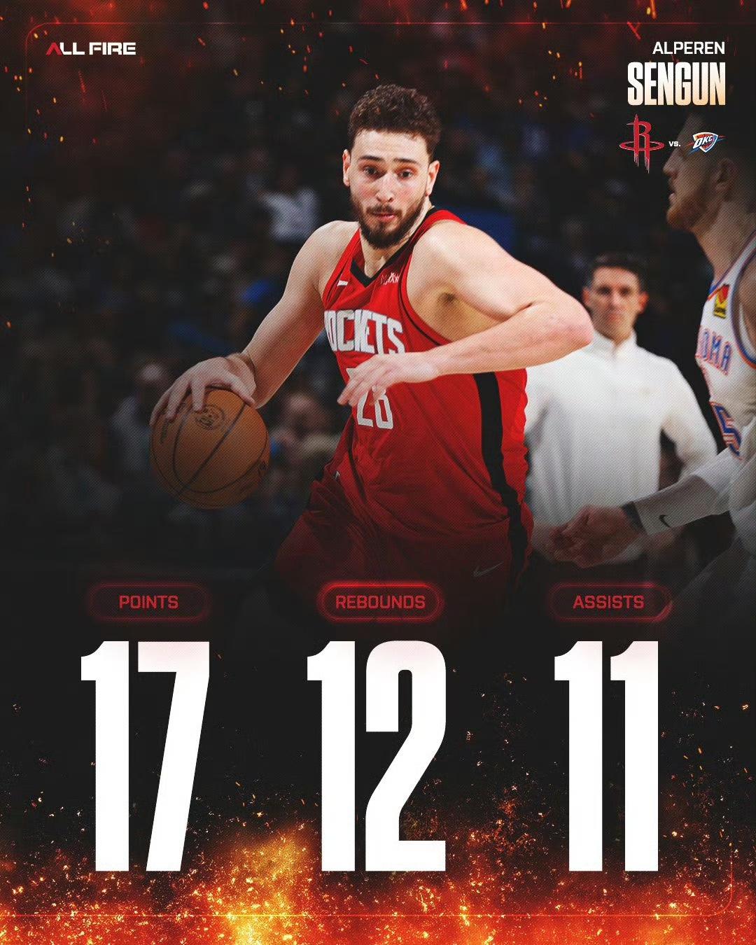阿门休战火箭首发5人得分上双客场112:106拿下雷霆。 伊森无疑今天功臣吧 E