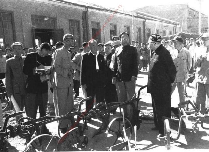 1958年9月5日,朱德视察乌鲁木齐市农业机械厂。