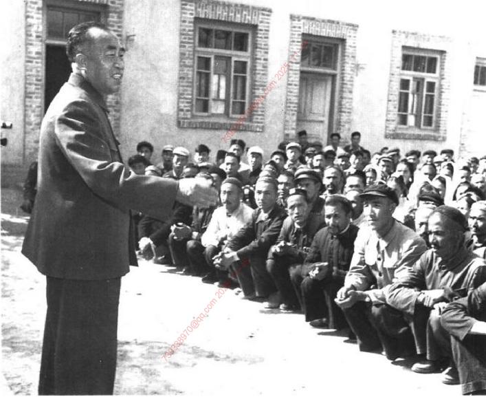 1958年9月18日,朱德视察库车时慰问不久前遭受洪水灾害的库车灾民代表。