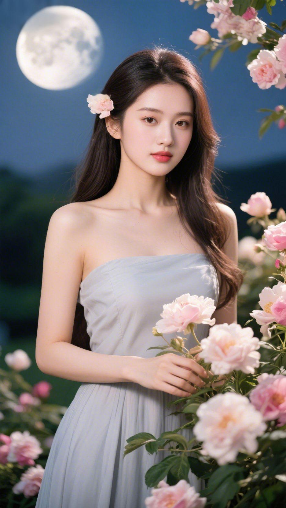 月间浅蓝伴花柔 月色裹着花影漫开时,她立在夜的轻软里,像浸了雾的浅蓝,柔得清透。 衣裙衬着舒展的肩,薄而软的面料里,藏着穿搭的自在感。长发垂落肩侧,鬓边别着的花轻晃,未刻意打理的模样里,浸着自然的柔和。衣料轻覆身形的妥帖中,没有局促的紧绷,连指尖碰着的花瓣,都染着夜的松弛。 她的神情舒展自然,不用拘着姿态,不用斟酌神情——这才是日常里最动人的舒展。原来淡色穿搭的美从不是用力的装点,是像这浅蓝的柔一样,淡得清透,松得自在。 淡色轻雅穿搭 日常松弛感