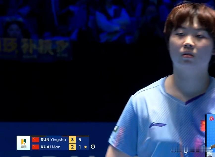现场的呐喊声真的影响了蒯曼的发挥!第五局孙颖莎3:2领先蒯曼,第六局的时候,现场为孙颖莎呐喊的声仿佛影响了快慢的发挥,开局七比二,孙颖莎领先。这场比赛,孙颖莎应该进入决赛,已经没有问题!同是中国球员,现场的球迷表现的令人不可思议!应该为两位女生同时加油,是球迷应该做到的,国乒团结一致才是外协所羡慕的和忌惮的!这种氛围不知道什么时候才能改变!