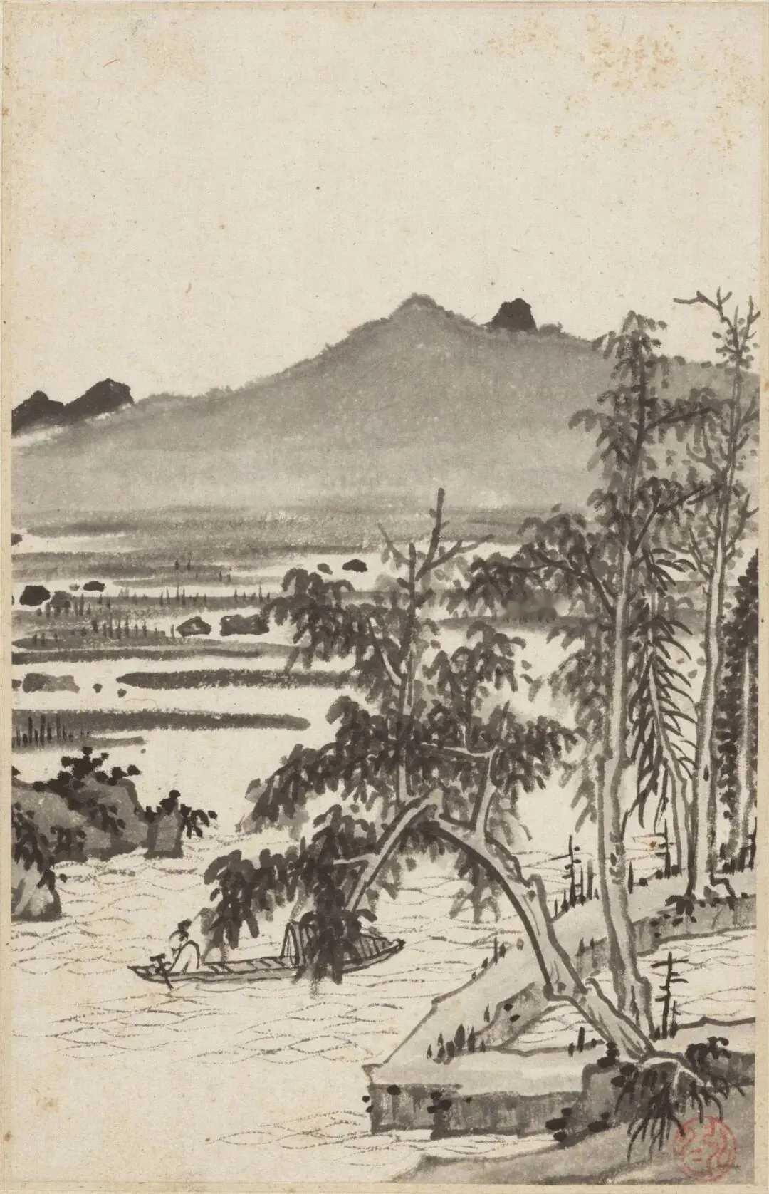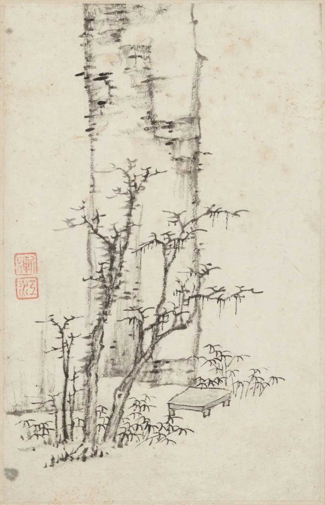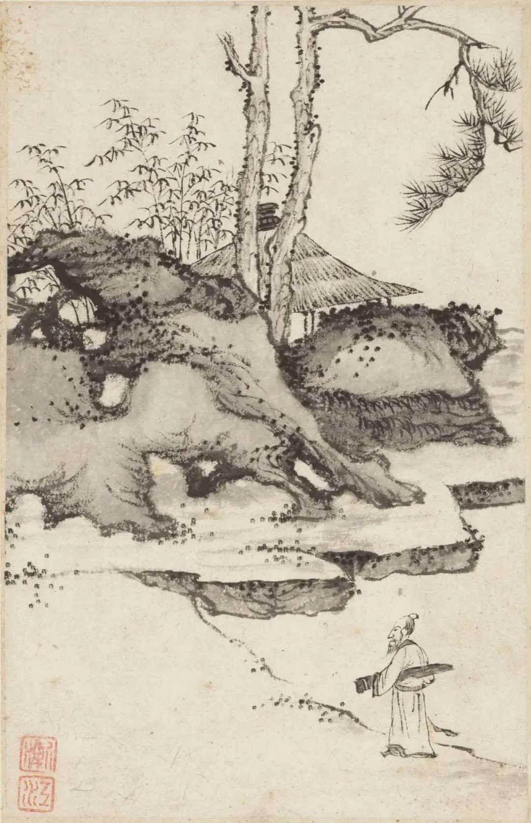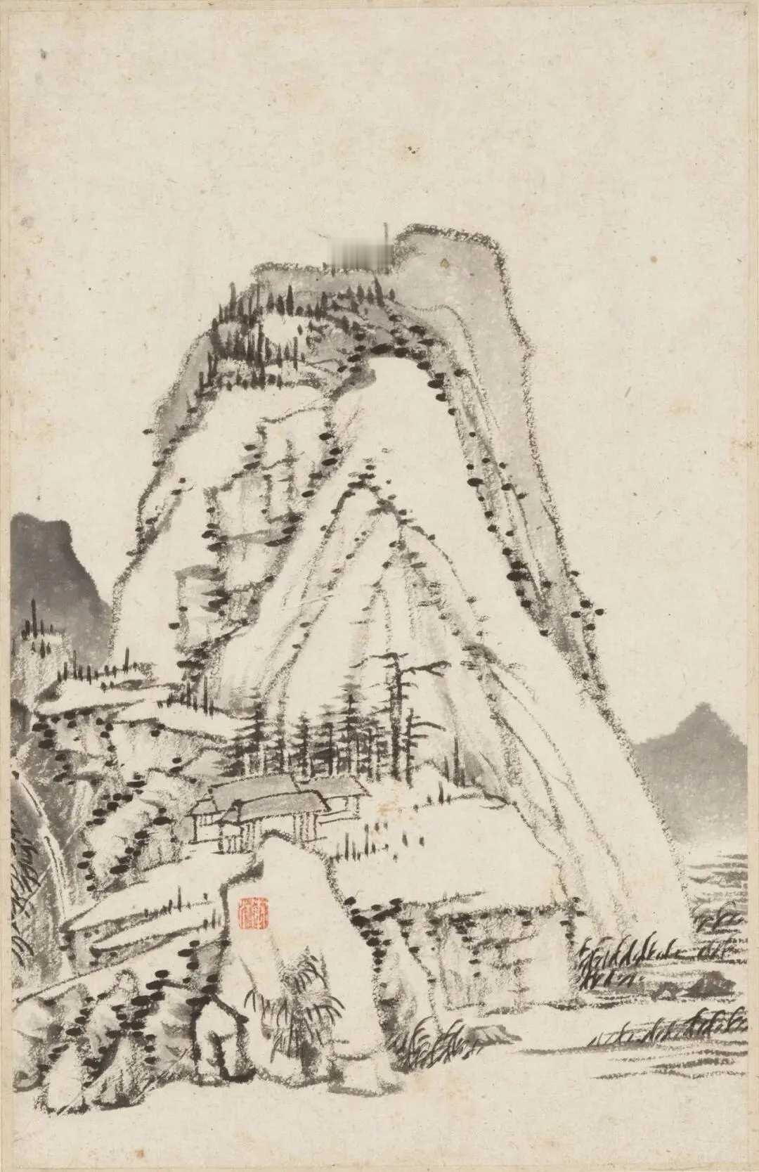 清 弘仁《山水册》纸本 册页 水墨 22x14.5 厘米,安徽博物院藏。这组册页作于顺治十五年(戊戌,1658年)十二月,弘仁时年49岁。当时为大雪阻于沚阜,暂居苏姓居士家,心怀感激,作画十幅,赠与主人为谢。这就是中国风遇见艺术