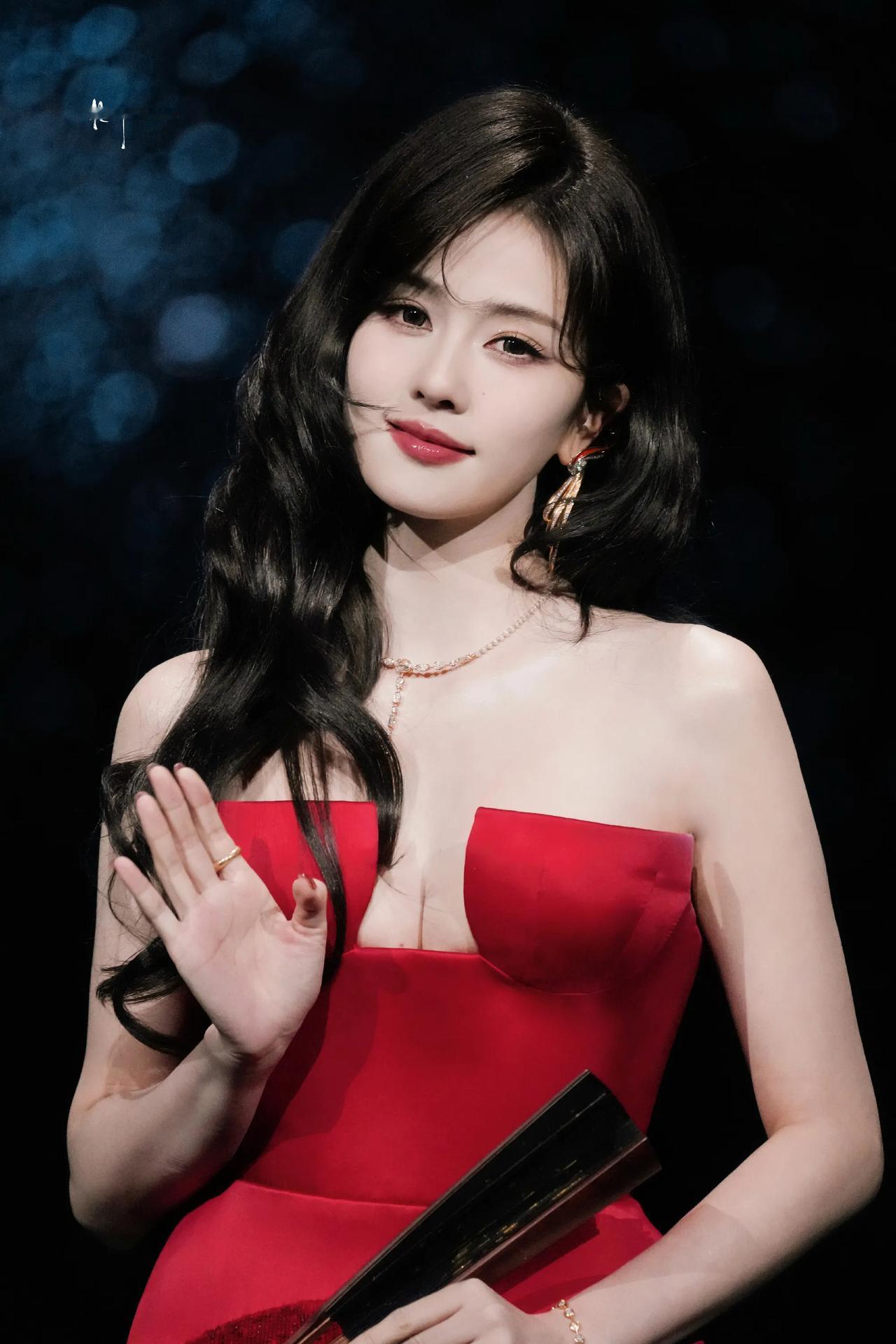 这次微博之夜,白鹿的红裙造型可以说是全程高光,从穿搭、现场互动到宣传效果,都特别成功,直接在一堆红毯造型里脱颖而出。 她没走现在很火的清冷、仙气路线,而是选了复古港风,又飒又明艳,特别抓人眼球。穿的是高定红裙,丝绒抹胸配亮片裙摆,高开衩很显气场,再配上复古大波浪和红唇,搭配高级珠宝,白皮肤配红裙,视觉效果特别强。 红毯上还有个超出圈的名场面:粉丝递来红扇,她接过来、开扇遮脸、眨眼,最后合扇飞吻,动作自然又灵动,一点不僵硬,松弛感和亲和力拉满,成了当晚最有记忆点的镜头。 更巧的是,当天正好是她新剧《唐宫奇案》首播,红毯红衣侠女的感觉和剧中角色很搭,她还特意签了剧中角色名,直接把红毯热度引到新剧,时尚和宣传两不误。 能这么火,主要是风格特别、不撞款,还特别贴合她的长相优势,团队从服装、妆发到现场表现都很专业,生图也很能打。 当然也有小争议,有人觉得裙子太性感,还有人对热搜数据、时尚媒体评价有不同看法。 但整体来看,这已经不只是好看的红毯造型,更是一次很成功的形象升级和流量运营,风格突出、互动加分、宣传到位,算得上是近年很经典的红毯案例。