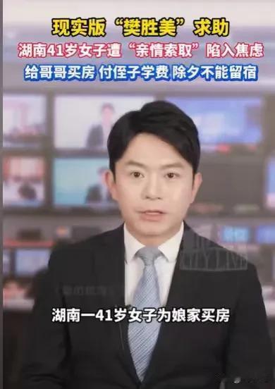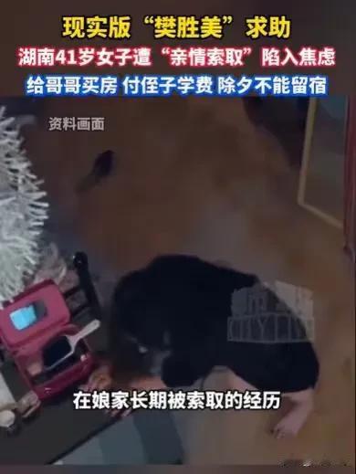 “现实版的樊世美!”湖南,41岁女子,长期被娘家人索取,她不但为哥哥买房付首付,还独自承担侄子3年的学费,这还不行,春节到了,娘家人又要她置办大家电,更过分的是,除夕夜她不能留宿在娘家。 又临近春节了,陈女士一想起过春节,内心就颤抖着,往事的一幕幕又涌现在眼前,让她深陷情绪的漩涡,久久不能自拔,她痛苦地卷缩在一起。 她的痛苦来自娘家,娘家人一直向她索取,家里大大小小的事,都要向她索取,不管她有没有钱,都要她拿钱出来,这让她十分痛苦。 曾经,她始终觉得娘家是她最坚强的后盾,婚姻不一定能够给她带来幸福,但娘家始终会有她的一席之地。 更何况娘家始终是家,帮助家人是理所当然的,家人过好了,她自然也就能够过好了,既然自己有能力,娘家人索取,她就给。 她真的是倾尽了自己的所有,帮助娘家人,哥哥说他要买房,父母就找到她,让她拿出买房的钱,但是陈女士只能拿出付首付的钱,即使这样,哥哥也毫不客气,让她付了房子的首付。 陈女士连自己的家都还没有着落,就得为哥哥先买房,为了兄妹情,为了让娘家人过得好些,她拿了首付,给哥哥买了房子。 给哥哥买了房子,她手里已经没有了多少积蓄,但是父母和哥哥又要让她供侄子读书,一供又是三年,三年的学费,所有的都是她承担。 她对哥哥和侄子,真的是仁至义尽了,可是她就算对娘家人这么好,付出了自己的全部,娘家人还继续向她索取。 眼看过春节了,家里没有一件像样的大家电,娘家人又逼着她拿钱出来买大家电。 陈女士看着家家户户,喜气洋洋,她也不想娘家人的春节,过得寒碜,她咬咬牙又买了大家电,这下终于可以家和万事兴了。 她也终于可以安安心心过个开心的春节。 然而除夕还没到,娘家人就告诉她,除夕之夜,不能留宿娘家。 当陈女士从娘家人口中听到这句话,所有的委屈,所有的心酸,所有的情绪都翻滚而来,冲破了她内心的防堤,让她的眼泪涌泉而出。 这一刻,她终于意识到,她不过就是樊世美的现实版,娘家人不过把她当做取款机,家中始终没有她的一席之地。 她就是半路人,始终要半路出嫁的,嫁出去的女儿泼出去的水,她就应该为娘家人,做出她的所有贡献。 现在,陈女士想到有这样的娘家人,真的心酸又崩溃,除夕之夜,她看着家家户户大团圆,她明明为娘家人做了这么多,她却连个家都没有,她无家可归,她真的很痛苦。 她醒悟了,她不能再为娘家做贡献了,即使这样,往后每一年临近春节,她都会想起自己曾经的经历,她一次又一次地陷入情感漩涡。 有这样的娘家人,陈女士在娘家是过不好的,有钱的时候,娘家人是索取,过年也没有把她当家人。 有人就说了,遇到这样的娘家人,早应该受够了,出去租房住,都没必要回娘家。 最怕的就是,有的女儿,一厢情愿,自愿掏心掏肺,耗尽所有,帮助娘家,最后落得自己无家可归的地步。 有的家庭里,本来就不可能男女平等,父母始终向着儿子,总想着女儿半路要走,想着嫁出去的女儿是泼出去的水,能够让她们多付出,就让她们多付出。 可悲的是,有的女儿认为娘家始终是家,倾尽所有也要帮娘家,然后亏待了自己的丈夫和子女。 可以说陈女士遇到这样的家庭,她无法生活在一个优良的家风环境中。 《民法典》第1043条规定:家庭应当树立优良家风,弘扬家庭美德,重视家庭文明建设。 一个优良的家风,应该是男女平等,应该是共同为家付出,应该是尊重每一个家人。 但现在陈女士的处境是,她就算是付出了自己的所有,娘家人也没有把她当家人。 这样的娘家人,其实女儿就应当是拒绝娘家人的索取,女儿的财产,始终属于女儿的个人合法财产,娘家人不可索取。 《民法典》第267条:私人的合法财产受法律保护,禁止任何组织或者个人侵占、哄抢、破坏。 现在陈女士就是被娘家人不断地索取,导致自己处于进退两难的地步,即使这些事情过去了,但这些回忆依然成为她的心理阴影,让她时常陷入情绪的漩涡。 那么你对陈女士有何看法呢?