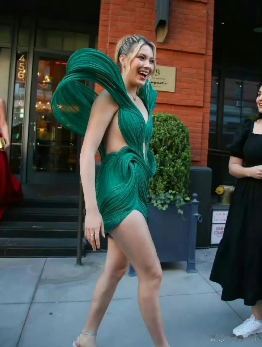张天爱跟素人合影,胯真的好宽,大宅院似的