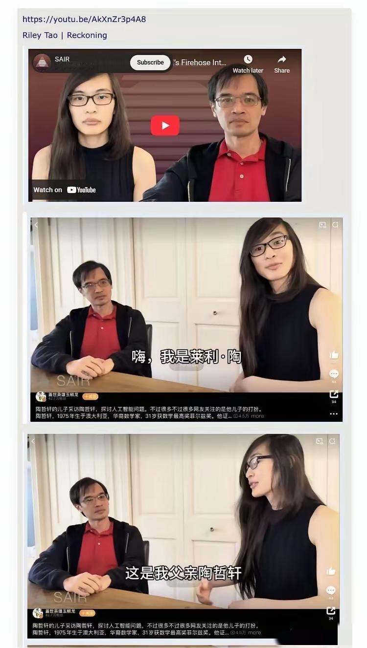 陶哲轩真还不如当年回中国呢,先是儿子变性了,然后经费被卡了。 不得不说,陶哲轩确实是华人乃至全球最聪明的人物之一。然而现在陶哲轩头疼一件事:他的实验室没经费了。 原来特朗普大肆砍掉科研经费开支,首先遭殃的就是像陶哲轩这样的华裔。甚至迫害这些华裔科学家。据说某个著名的归国院士,其留在美的前妻被逼自杀了。 陶哲轩被迫到处筹款。全世界最聪明的大脑之一,却没法研究科学,只能低三下四去要经费,这简直是极大浪费。 更令陶哲轩头疼的是,他唯一的儿子也变性了,和马斯克的大儿子一样。陶哲轩的儿子变性后改名莱莉-陶,不知道老陶心里想的是什么。 早知道这样,还不如回国呢。