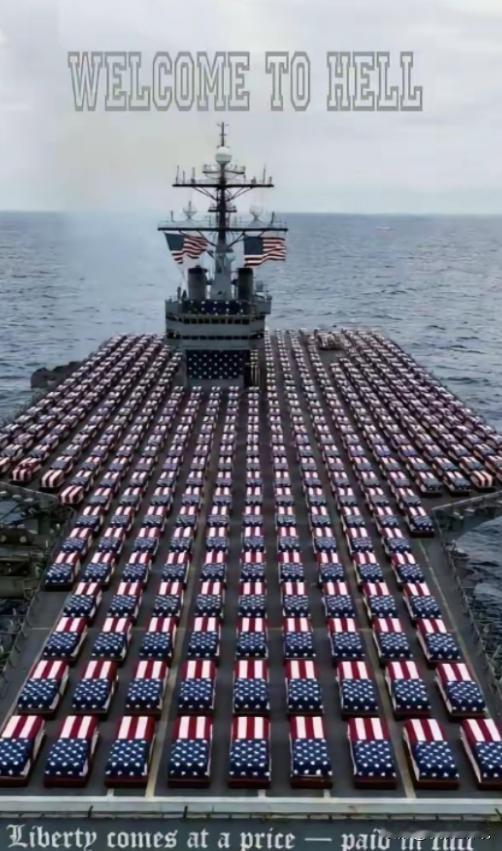 俗话说,杀人诛心,想不到伊朗更狠!伊朗通过一张图片瞬间开启舆论战,相当于把刀捅到美国人的肺管子里去了。 伊朗这波舆论战的高明之处就在于他不是单纯怼美国政客,而是精准刺向了最不该被忽视的群体——前线美国大兵。 这张布满盖旗棺材的航母图,看似是视觉冲击,实则是把大兵们藏在心底的恐惧,赤裸裸摆到了台面上,这波心理拿捏,远比硬碰硬的军事威慑更狠。 美国总把航母吹成 “海上霸主”,可对于舰上的大兵来说,这钢铁巨兽从来不是安全的避风港,而是飘在海外的 “移动赌桌”,赌的是自己的命,为的却是政客们的霸权野心。 他们远赴中东,不是什么保家卫国,只是成了美国争夺利益的棋子,谁心里都清楚,枪林弹雨里,自己随时可能成为棺材里的那个。 这份恐惧本就藏在每个大兵的心底,美军内部的反战情绪从来就没断过,不少人都是被迫部署、身不由己。 伊朗这张图,直接把这份不安放大到极致,让他们直面最不愿面对的结局,政客们坐在办公室里谈战略、算利益,对伤亡数字毫不在意,可大兵们在乎自己的命,在乎家里等归的亲人,这张图一出来,军心的动摇是必然的。 我个人觉得,伊朗此举不失为一招妙计,如果能配合上好的宣传手段,再加大力度扩大影响,说不定还真能为现在的局势带来一些变动。 以上均是小编个人看法,如果您也认同,麻烦点赞支持!有更好的见解也欢迎在评论区留言,方便大家一同探讨。{抱拳}