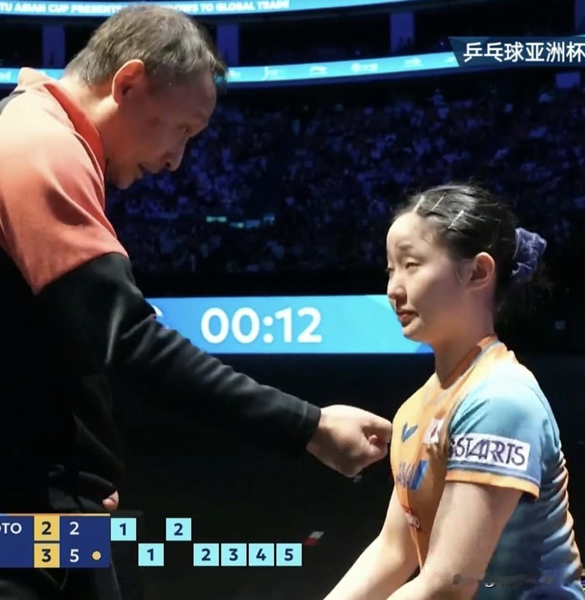 又面临同样的问题, 孙颖莎和王曼昱谁能夺冠? 您还真别说, 王曼昱这场球赢得漂亮。 在亚洲杯女乒单打半决赛中, 击败劲敌日本队的张本美和, 挺进亚洲杯决赛会师孙颖莎。 其实这场半决赛的比赛, 并不像比分4-2那样轻松, 一开始王曼昱打得并不顺, 总比分0:1落后。 比赛很胶着,双方其实势均力敌, 前4局总比分打成了2:2。 在关键的第5局, 王曼昱在6:2领先的情况下, 对手追到了7:7平, 双方的教练都叫了暂停。 从现场直播的视频中可以看出, 张本美和在接受教练的指导时, 像个小学生坐的板板正正。 到底还是王曼昱技高一筹, 顶住压力拿下关键的第5句。 第6局的关键时候, 王曼昱大赛的经验更丰富, 心态和抗压能力更强, 她乘胜追击再下一城, 最后以总比分4:2战胜了张本美和。 早前孙颖莎已经战胜了队友, 提前进入了女单决赛。 这样王曼昱和孙颖莎会师, 中国女乒已锁定了该项目的冠亚军, 无论最后谁夺冠, 都值得庆贺!! 王曼昱挺进亚洲杯决赛会师孙颖莎