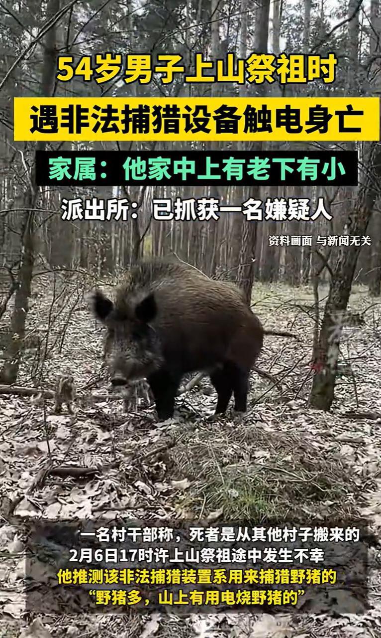 重庆巫山,一54岁男子祭祖下山途中,不幸触碰到一条横在必经山路上的铁丝。谁曾想,这竟是捕猎野猪的非法电网,瞬时上万伏高压夺走了他的生命。期间,男子给家人发了条“来接我”的信息后,便音讯全无。家人找到男子时,他倒在草丛边,膝盖处的裤子已被电流烧穿,皮肉呈现出骇人的紫黑色。这条一米宽的小径,平日村民常走,无任何警示,如同一个隐蔽的“致命陷阱”。家属即刻报警,几天后,一名嫌疑人被警方抓获。   2026年2月6日,对于54岁的陈明(化名)而言,这一天是祭奠先祖、寄托哀思的日子。   午后,他像往年一样,带着香烛纸钱,独自踏上了通往祖坟的山路,这条山路他走过许多遍,熟悉得闭着眼都能摸清方向。   谁也不会想到,这次寻常的祭祖之行,竟会成为他与家人的永诀。   下午17时20分左右,山下的家人收到了陈明发来的一条简短信息,内容大致是让家人方便时去山路边接他一下。信息语气平常,家人也未觉有异。   然而,自此之后,陈明的手机便再也无人接听。   起初,家人以为只是山中信号不佳,但随着时间一分一秒过去,不祥的预感逐渐笼罩心头。   天色渐暗,家人急忙沿着他往常归来的路径上山寻找。   在手电筒微弱的光束下,家人一边呼喊着陈明的名字,一边仔细搜寻着路旁的每一处草丛。   终于,在一段约一米宽的狭窄山路上,他们看到了令人心碎且震惊的一幕,陈明面朝下倒在路边,已然没了气息。   而就在他身体近旁,一根看似普通的电线,隐秘地横设在路面上,两端没入草丛,若不细看极易忽略。   更令人触目惊心的是,陈明膝盖部位的裤子布料呈现出焦糊的破洞,其下裸露的皮肤颜色异样,隐隐透着一种不祥的紫绀。   家人的目光惊恐地顺着电线延伸的方向搜索,在路边茂密的灌木丛后,发现了一个被塑料薄膜遮盖的蓝色盒子。   揭开薄膜,里面是一个连接着复杂线路的电瓶装置,这个装置被指认能释放出高达上万伏的电压。   这个非法设置、用于捕猎野生动物的高压电网,现场没有任何警示标识,像个致命的陷阱。   亲属在接受采访时悲痛地表示,陈明正值54岁的壮年,是家里主要的经济和精神支柱。   他勤劳、顾家,每年的祭祖活动他都郑重其事,这不仅是对先人的缅怀,也承载着他对家族传承的看重。   对于陈明的离世,家人无法接受。   有村 干 部透露,当地山区野猪数量较多,对庄稼造成一定损害,因此山上确实存在少数人私自架设电网用于捕猎野猪的情况。   但他强调,村里对此类行为并不掌握具体情况。   2月8日上午,警方对外确认,已经就此事件立案侦查,并且抓获了一名涉案嫌疑人,案件正在进一步办理中。   那么,从法律角度,涉案嫌疑人可能面临怎样的法律责任呢?   《刑法》第一百一十五条规定,……以其他危险方法致人重伤、死亡或者使公私财产遭受重大损失的,处十年以上有期徒刑、无期徒刑或者死刑。   过失犯前款罪的,处三年以上七年以下有期徒刑;情节较轻的,处三年以下有期徒刑或者拘役。   本案中,嫌疑人私设高压电网的行为,直接导致被害人死亡。   鉴于嫌疑人将电压高达上万伏的电网设置在宽仅一米、供村民通行的山路上,且无任何警示,此装置瞬间放电足以致命,其威胁对象是不特定行人的生命健康,侵害的法益是公共安全。   不过,嫌疑人目的可能在于捕猎野猪,无证据显示其希望或放任他人死亡。   然而,在公共道路设置隐蔽致命陷阱,嫌疑人作为心智正常的成年人,应当预见可能有过路人触碰并发生死亡后果,却因疏忽大意 “没有预见” ,或轻信能够避免,此心态符合 “过失” 。   可见,嫌疑人涉嫌构成过失以危险方法危害公共安全罪。   又《刑法》第三百四十一条第二款规定,违反狩猎法规,在禁猎区、禁猎期或者使用禁用的工具、方法进行狩猎,破坏野生动物资源,情节严重的,处三年以下有期徒刑、拘役、管制或者罚金。   所以,嫌疑人私设电网狩猎野猪,同时涉嫌构成非法狩猎罪。   那么,嫌疑人的行为触犯数罪名,构成“想象竞合”,致人死亡后果使前罪危害性更重,按“从一重处断”原则,可能以 “过失以危险方法危害公共安全罪” 追究刑责,非法狩猎情节可作为量刑考量。   此外,《刑法》第一千一百六十五条规定,行为人因过错侵害他人民事权益造成损害的,应当承担侵权责任。   基于上述,嫌疑人私设电网造成陈明离世,其应承担侵权损害赔偿责任。   若电瓶、电线等设备系购买所得,销售方若明知购买者将其用于非法设置致命陷阱而仍予出售,可能需承担相应的产品责任或共同侵权责任,但此点需另案调查取证。   因此,陈明的近亲属可在刑事案件审理过程中提起附带民事诉讼,也可单独提起民事诉讼,主张赔偿责任。   对此,您怎么看?
