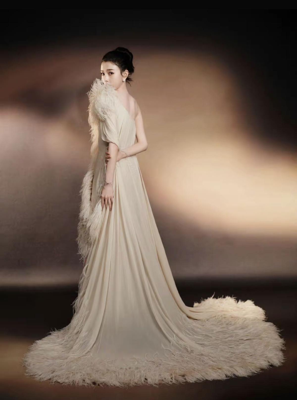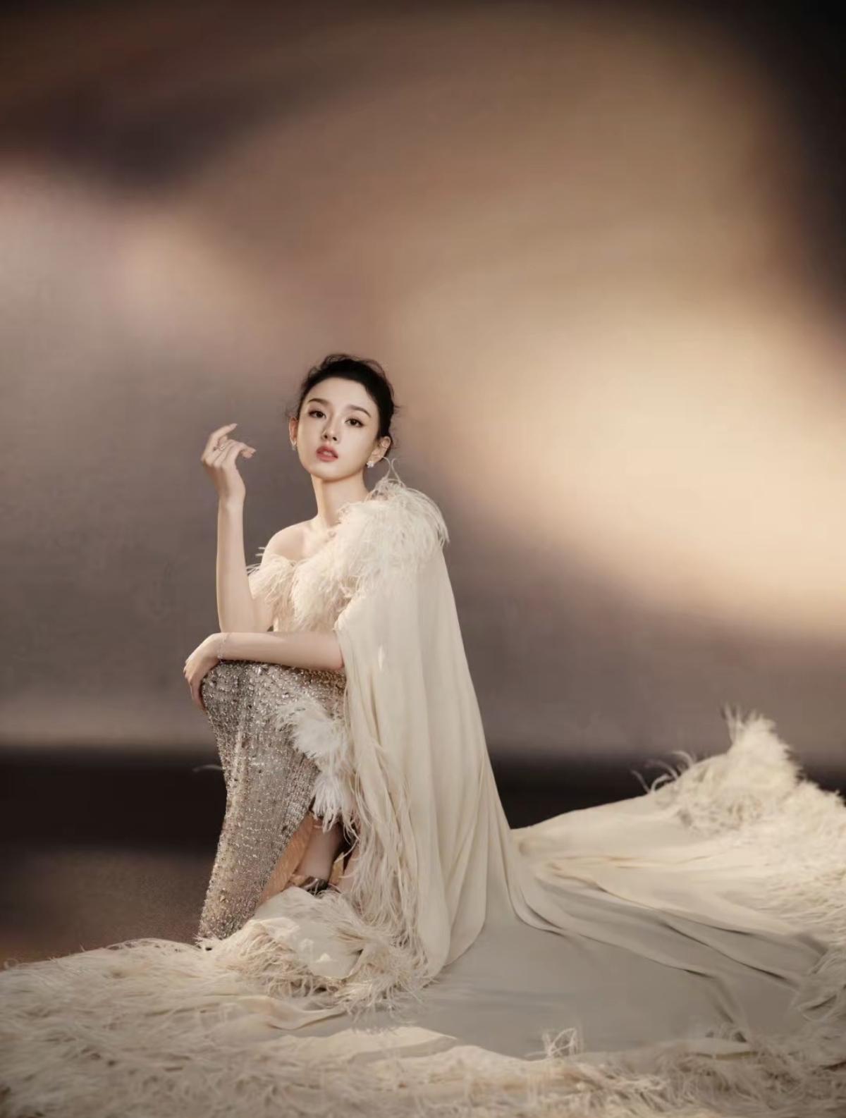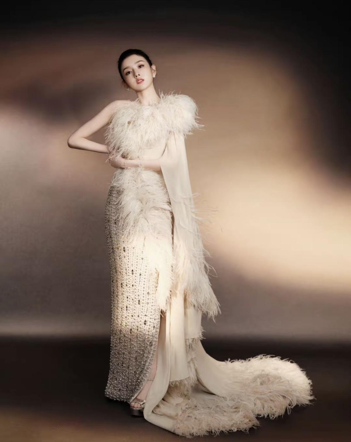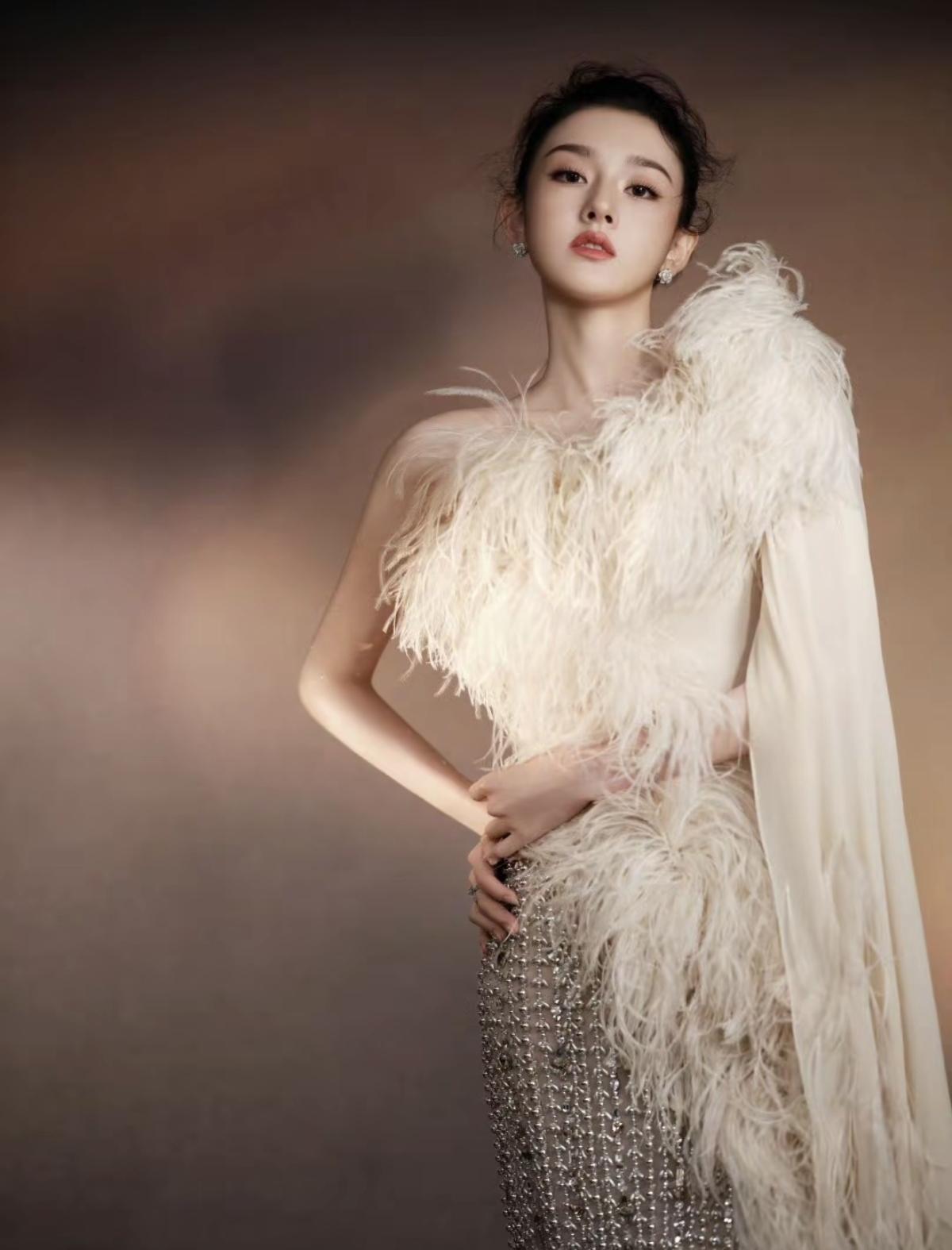 宋祖儿的羽毛礼服,是把“仙气”穿在了身上。单肩羽毛披肩摇曳生姿,水钻裙身流光溢彩,在暖光下美得不可方物[加一][玫瑰]娱乐明星
