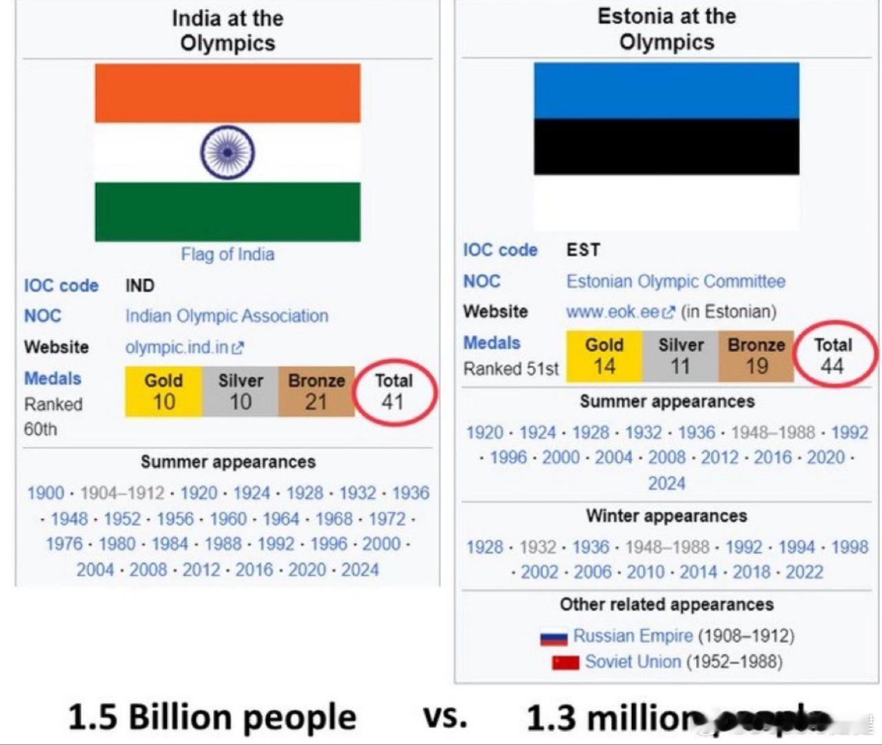 印度体育好惨!尽管人口不到印度的千分之一,但爱沙尼亚🇪🇪在奥运会上的奖牌数量