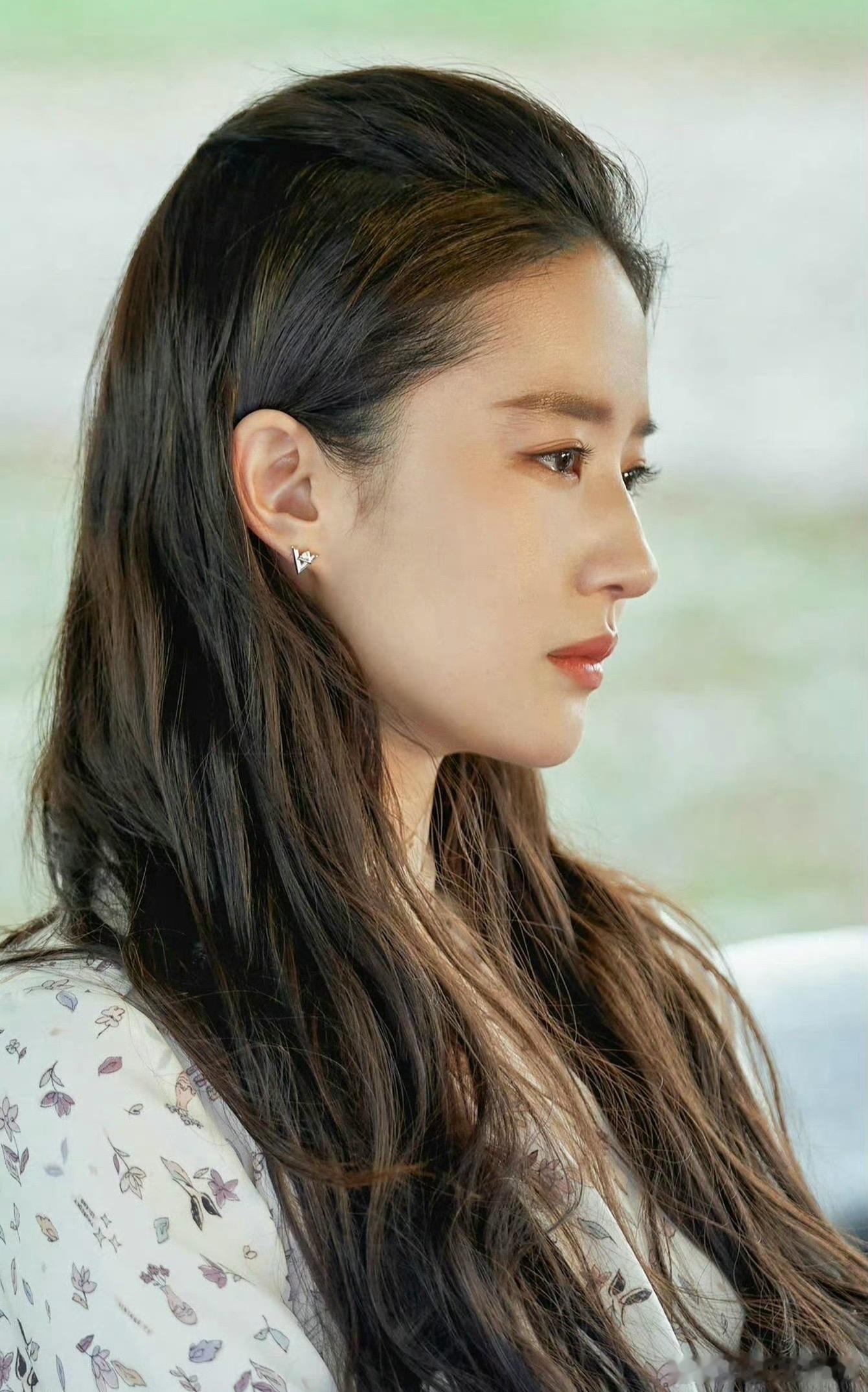 侧脸低垂时,流露出温柔又略带忧郁的气质,像一阵轻拂人心的晚风,让人心生怜爱。