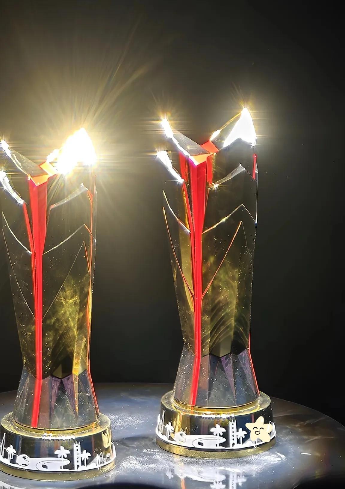 亚洲杯冠军奖杯, 终于露面了! 奖杯看起来金闪闪的,但是造型确实没有上一届好看。 网友脑洞大开,有人说像棕榈树干,有人觉得像奥特曼变身器,还有人说神似竹笋,虽然底座融入了海南特色,辨识度在线,但整体美感还是差了点味道。 对比去年深圳亚洲杯的奖杯,不管是线条设计还是整体质感,都更精致大气,越看越耐看。奖杯是荣誉的载体,好看的造型更能让人印象深刻,也更有收藏与纪念意义。 赛事升级的同时,奖杯设计也该跟上审美,经典款往往更能经得住时间考验。 你更偏爱本届海南款,还是去年深圳款的奖杯?