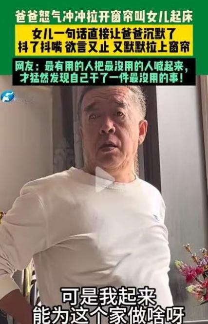 太真实了!辽宁,一女生放假回家后天天睡懒觉,爸爸怒气冲冲进到女儿房间,一把扯开了窗帘,并大声喊她起床,谁知,女生仅反问了一句话就让爸爸乖乖拉上窗帘,然后默默退出了房间! 这位女生叫小王,平时在外地打拼,上班的日子过得特别紧张。每天不到7点就得爬起来赶通勤,忙完一天下班,天早就黑透了,连好好看一眼白天的太阳都成了奢侈。 哪怕是周末,也只能休息一天,遇上单位检查或者有特殊情况,还得临时加班,常年下来,整个人都处于疲惫状态。所以这次放假回到老家,她最大的心愿,就是好好补觉,恨不得和床融为一体。 起初那两天,小王的爸爸还耐着性子没多说什么,想着女儿刚回来,确实该好好休息。可等到第三天,看着女儿天天睡到日上三竿还窝在床上,他心里的火气就慢慢上来了。 更让他在意的是,有时候明明没见女儿起床,却能在短视频软件上看到她的账号在线,显然是醒了之后,一直躺在床上刷手机,这让一辈子勤劳惯了的爸爸,觉得女儿太懒散。 忍无可忍之下,爸爸再也按捺不住,三步并作两步冲进女儿房间,直奔窗户边,一把就将窗帘扯到了一边,刺眼的阳光瞬间洒满房间,他原本想好好教训女儿一顿。 可小王并没有生气,也没有反驳,只是慵懒地放下手机,伸了个懒腰,一脸认真地说出了自己的想法,大意是自己平时上班太累,放假回家也没什么能帮上忙的,不如好好睡一觉。 听到这话,爸爸瞬间语塞,站在原地愣了半天,想说点什么,却发现找不到反驳的理由。他忽然意识到,女儿在外打拼有多不容易,平时舍不得休息,放假回家想补觉也没错。 没一会儿,爸爸默默走回窗边,把扯开的窗帘重新拉好,生怕阳光再打扰到女儿休息,然后轻手轻脚地退出房间,出去的时候还小心翼翼地把房门带上,全程没再发出一点声音。 事后,小王把这件有趣的小事发到了网上,本来只是想吐槽一下放假和爸妈的日常,没想到一下子引发了无数网友的共鸣,大家纷纷在评论区分享自己的经历。 很多网友都表示,自己放假回家也是这样,明明平时上班已经够累了,就想趁着放假多睡会儿,可爸妈比自己上班还积极,天不亮就来喊起床。 哪怕家里没什么事,爸妈也非要让自己起来坐着,仿佛多睡一会儿就是犯了大错,有时候自己忍不住反驳几句,爸妈也会变得无言以对,场面特别好笑又无奈。 也有不少身为父母的网友留言,说自己也看不惯孩子赖床,不是故意为难,就是一辈子早起惯了,改不过来。在他们眼里,冬天白天本来就短,早上再一赖床,一天的时间就浪费了。 他们从小就被教育要勤劳,觉得无所事事、整天躺在床上,就是浪费生命,所以看到孩子赖床,就忍不住想催促,其实心里都是为了孩子好,没有一点恶意。 说句实在话,咱们年轻人真的不是故意要跟爸妈作对,也不是懒散,只是平时工作压力太大,放假回家,赖床就是最简单、最直接的放松方式。 而爸妈们也没有坏心思,他们只是用自己一辈子的经验,来要求我们,怕我们养成坏习惯,怕我们以后吃亏,这份心意,我们都能理解。 这场看似好笑的赖床风波,说到底,就是两代人成长环境不同,养成的生活习惯和思维方式不一样,没有谁对谁错,全都是藏在细节里的爱和理解。