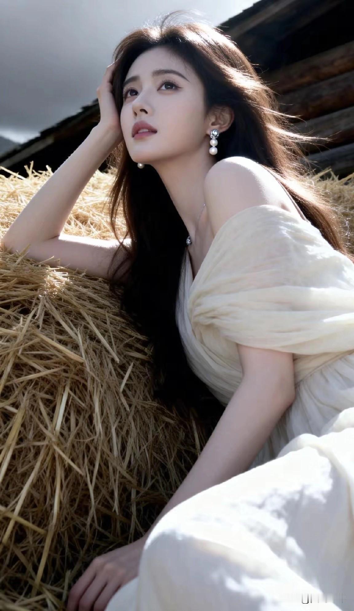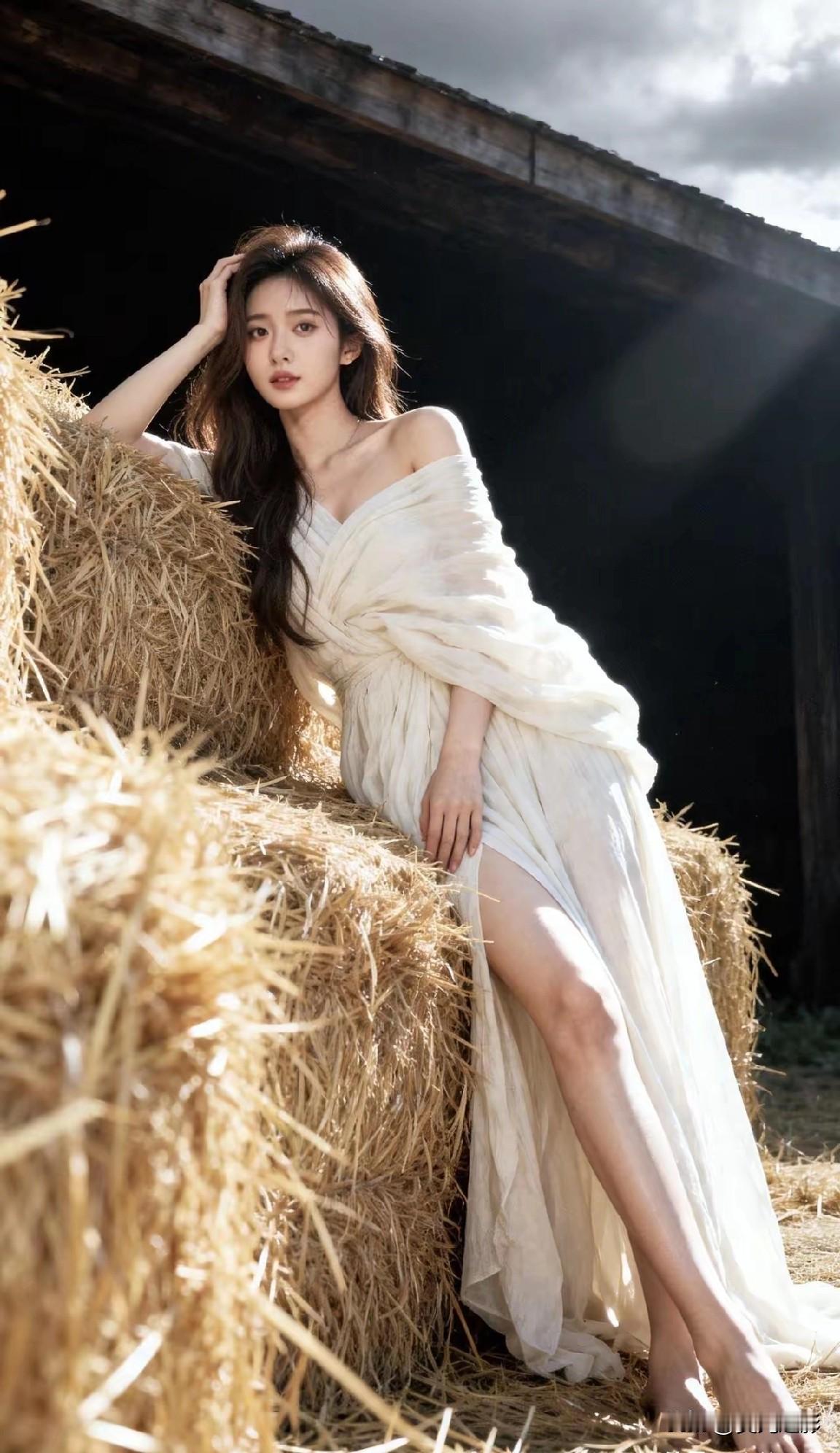 光之影&AI 田园少女与干草堆的浪漫邂逅🌾💐 乡村田野美少女 田园风美女