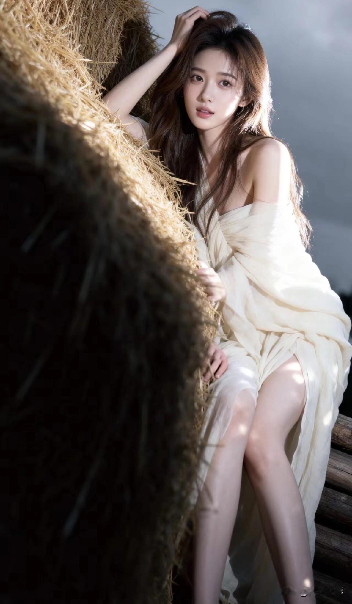 光之影&AI 田园少女与干草堆的浪漫邂逅🌾💐 乡村田野美少女田园风美女