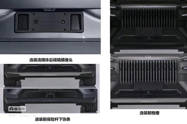 - 可选装直瀑式前格栅、电动伸缩踏板、不同样式轮圈、流媒体后视镜摄像头等配置。