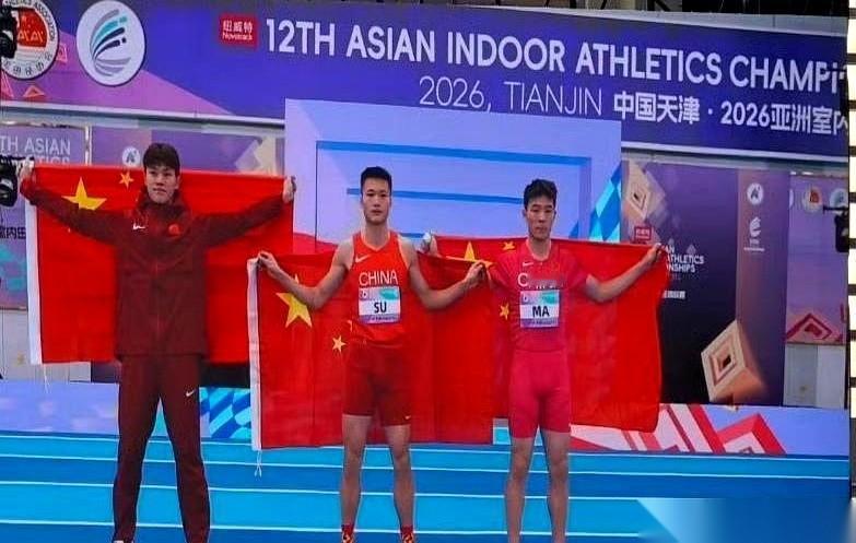 我跟你说,有一种场面,叫“不战而屈人之兵”。 领奖台上站了三个人,升起了三面一模一样的五星红旗。 你以为是团体赛?不,这是亚洲室内田径锦标赛,男子三级跳远的个人决赛。 咱中国的三个爷们儿,粟文、焦新评、马英龙,直接把金、银、铜牌全给包圆了。 让别人……嗯,重在参与吧。 这还是整个赛事的第一个决赛项目。 一上来就这么玩,这哪是比赛啊,这简直就是赤裸裸地“凡尔赛”。 是跟整个亚洲田径圈递了张名片,上面就写了四个字: 断层领先。 这种感觉太爽了。 不是那种声嘶力竭的狂喜,而是那种稳稳当当、胸有成竹、让对手连嫉妒都生不出来的绝对实力。 真好。 恭喜小伙子们。