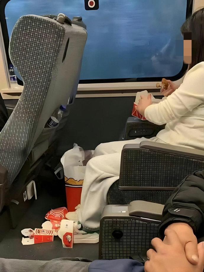 这素质,真的绝了!今天在高铁上看到这一幕,我整个人都气笑了。 满地的肯德基包装袋,就这么心安理得地扔在脚底下?明明座位的靠背后面就有垃圾袋,走两步就有垃圾桶,非要搞得像在自家猪圈一样吗? 我就纳闷了,能买得起高铁票,能吃得起全家桶,怎么就买不起一点“教养”呢?隔壁的小孩都看得直摇头。 大家评评理,这种行为是不是该直接拉入铁路黑名单?你们在车上遇到过这种“奇葩”吗?评论区晒晒你们见过最没素质的行为。 高铁文明出行 素质教育 生活百态