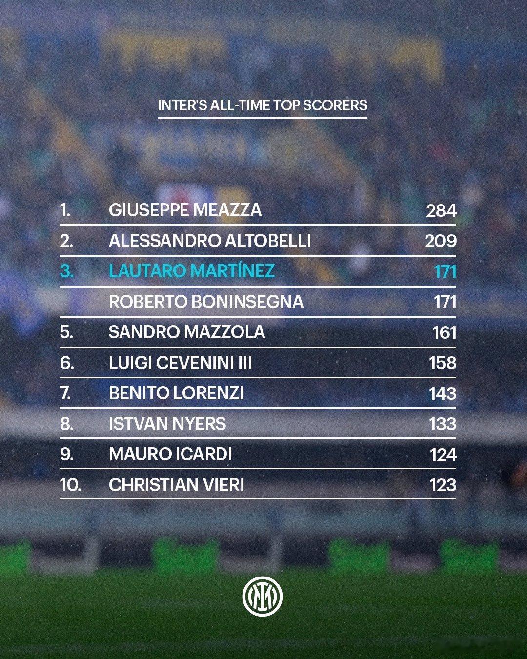 劳马已经上升到了国米队史射手榜的第三位🐂👏🎉