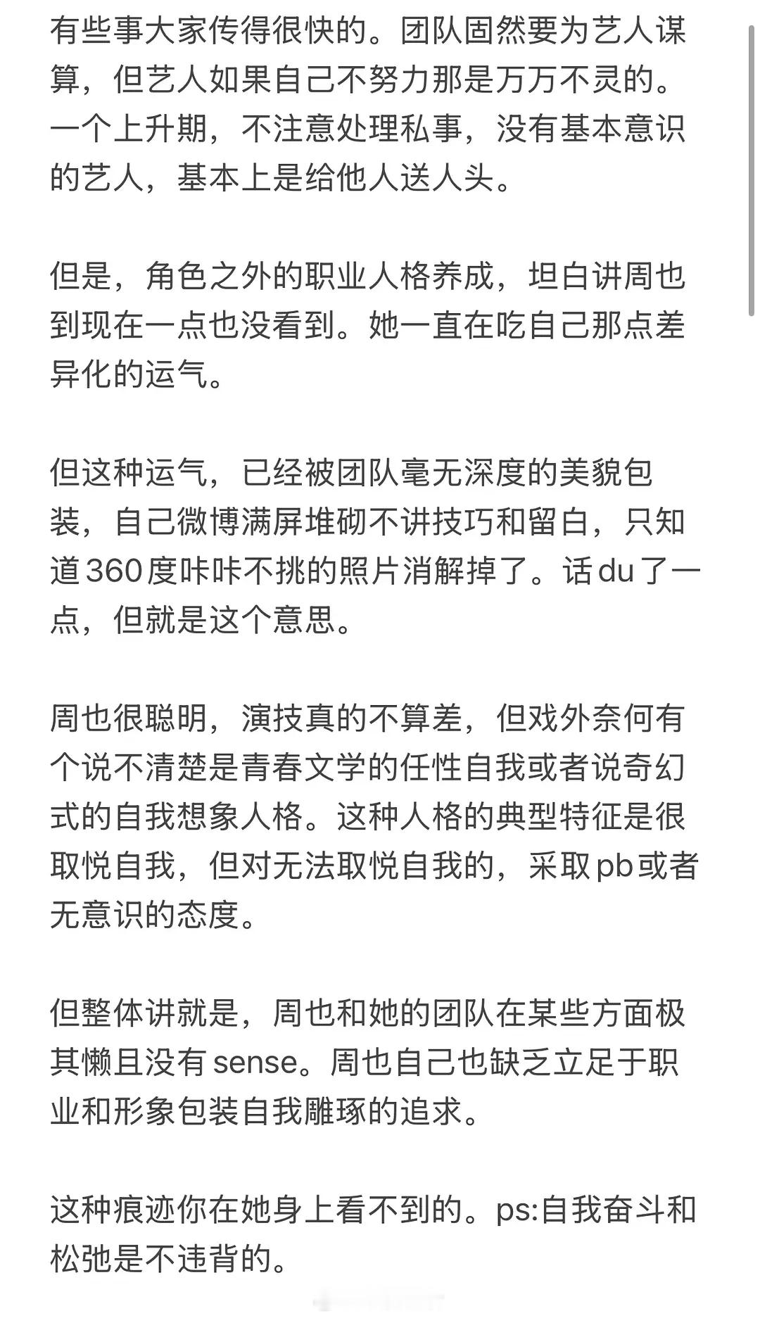 确实现在提起周也就只能想到空洞的美貌,个人特质和活人感都不强,作品印象也不深。她起点高的,但现在就是越来越泯然众人矣。95🌸里已经不在第一梯队了。