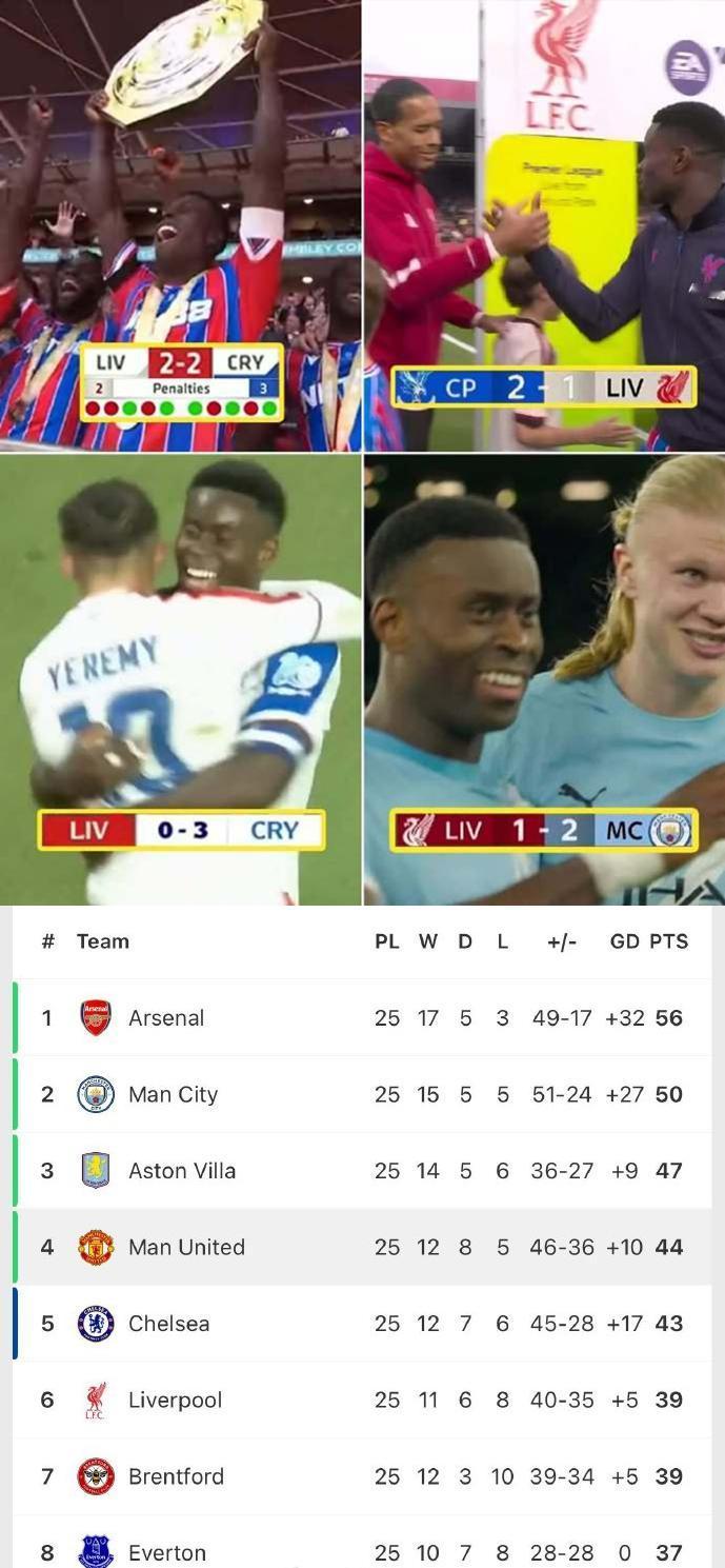 联赛苦不苦,看看红军利物浦,格伊本赛季已经4次击败利物浦。 话说利物浦要是没进前五拿到欧冠资格可就麻烦了。 剩下十三场比赛,利物浦要拿30分才能进前五,看来下赛季没得欧冠踢了。 红军这赛季钱花到位、阵容不差,但战术混乱、用人摇摆、临场调整拉胯,成绩崩盘,主教练首当其冲,高层是不是该考虑换教练了吧? 你看看人家曼联换了教练整个球队都不一样了,彻底脱胎换骨。