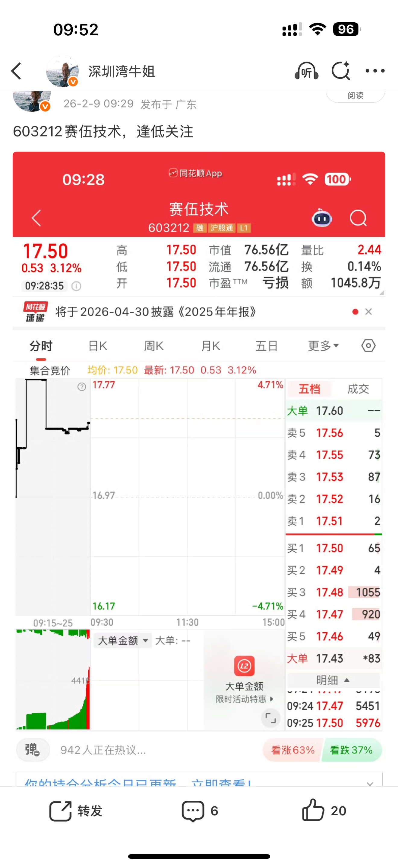603212赛伍技术即将涨停,这里休息一下继续拉会更好,继续大涨,点赞评论走一波