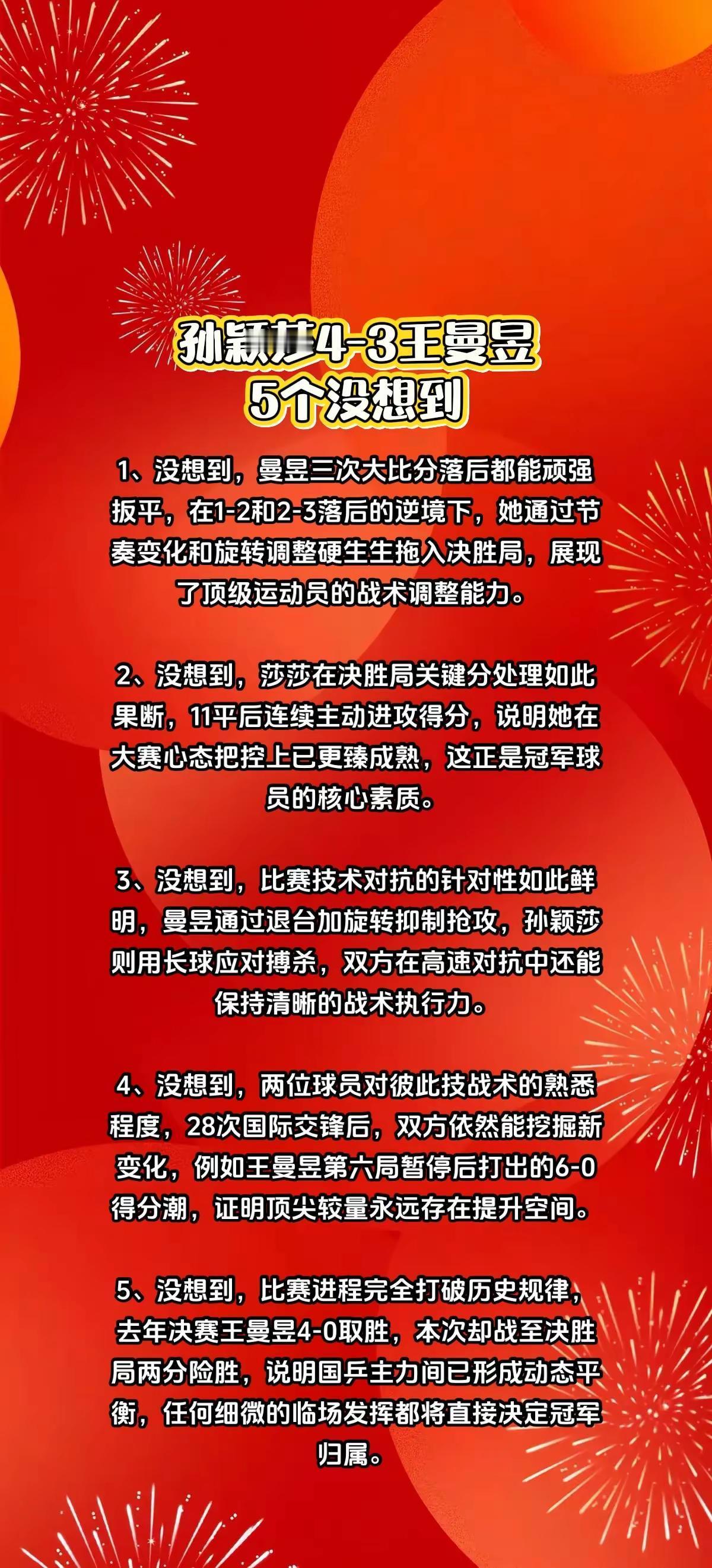 孙颖莎4-3王曼昱,5个没想到。 国乒 精选