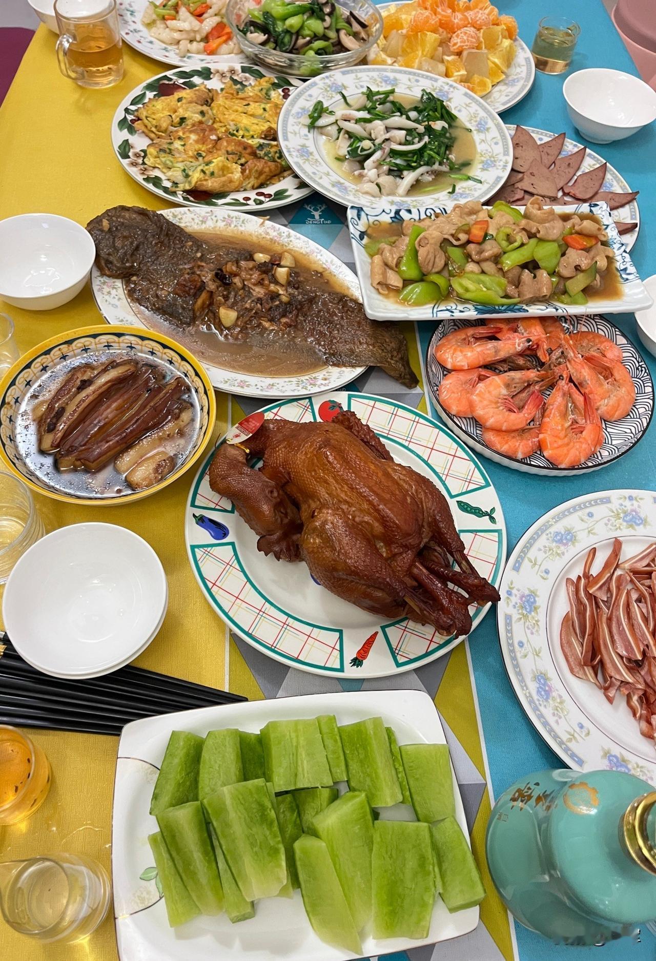 昨晚大姑节来了,还有她的女儿和女婿,外孙女,他们一起来拜年。 一年就这么一次,当然会让他们留下来吃饭,走亲戚吗就是应该这样,过年互相走动一下,才会越来越亲,如果不走动,就会越来越疏远。 然后我就使出十八般武艺,准备了一桌菜,都是什么菜呢? 香宇扒鸡超市买的,这个品牌的鸡口味不是太重,万里香是我们当地的有名的品牌,但是我觉得太咸了,现在都改吃这种品牌的扒鸡了。 炖了一条海鱼,我们管这种鱼叫塔墨鱼,不知道别的地方叫什么,这一次少适合小孩子吃,因为大姑姐的孙女爱吃鱼,所以准备了这个刺少的鱼。 白灼了大虾,这种吃法比较省事儿,主要是油少,比较健康。 凉菜准备的是猪肝猪耳朵。 炒菜是鱿鱼炒韭菜,尖椒炒大肠,香菇油菜,面条鱼炒鸡蛋,西芹山药,饭菜是花椒肉! 我们边聊天边喝酒,不知不觉喝了两瓶啤酒,过年了高兴一些就多喝点吧! 大晚上的喝了两瓶啤酒怎么办呢?是要长肉的,大姑姐他们走后我把厨房又收拾了一遍。然后我就是锻炼开始,怎么也得把这两瓶啤酒消耗掉啊?[捂脸] 过年了,吃吃喝喝多了,看来体重又要飙升了! 记录我的2026年夜饭安排 用记录我的生活日常