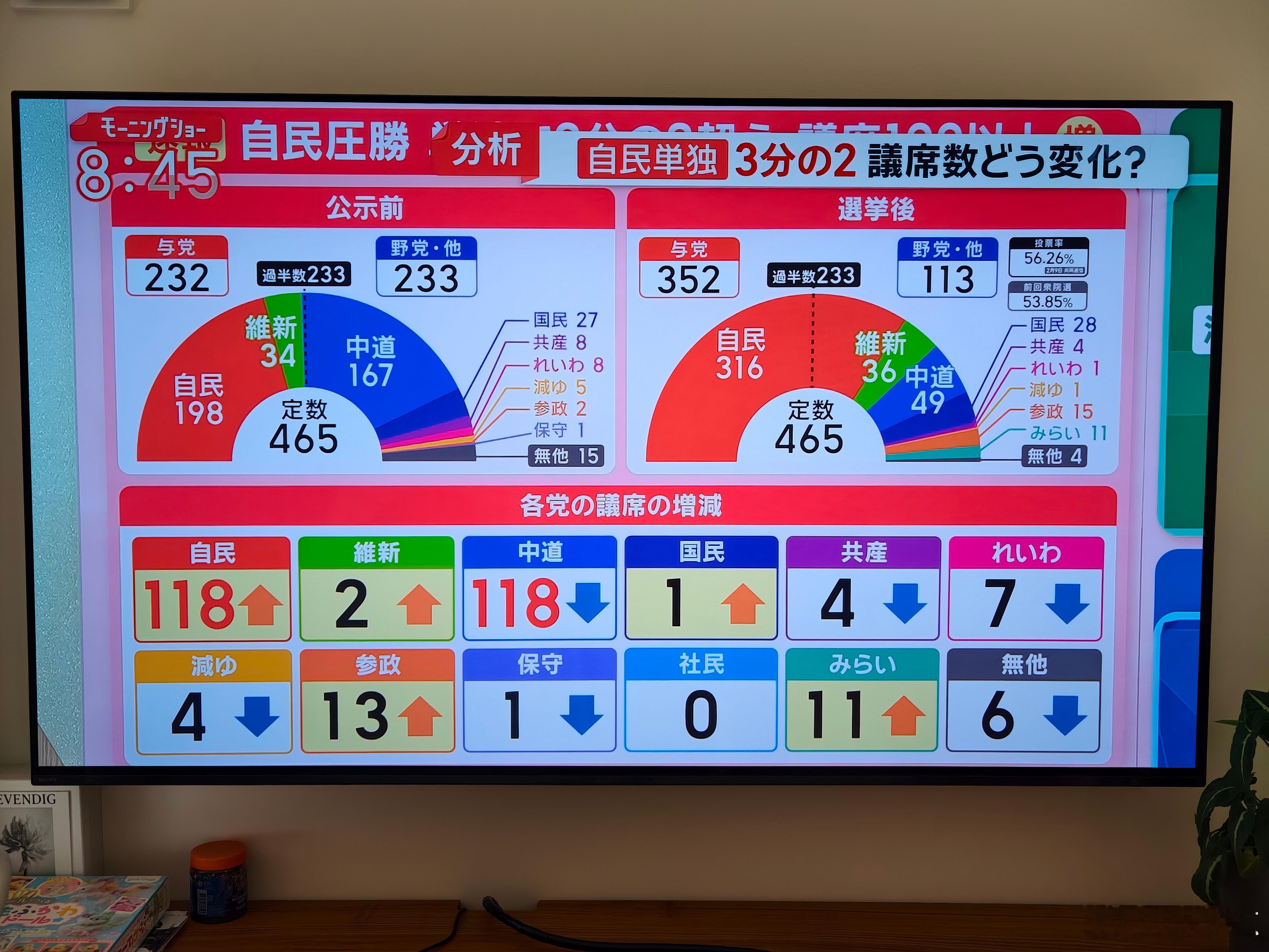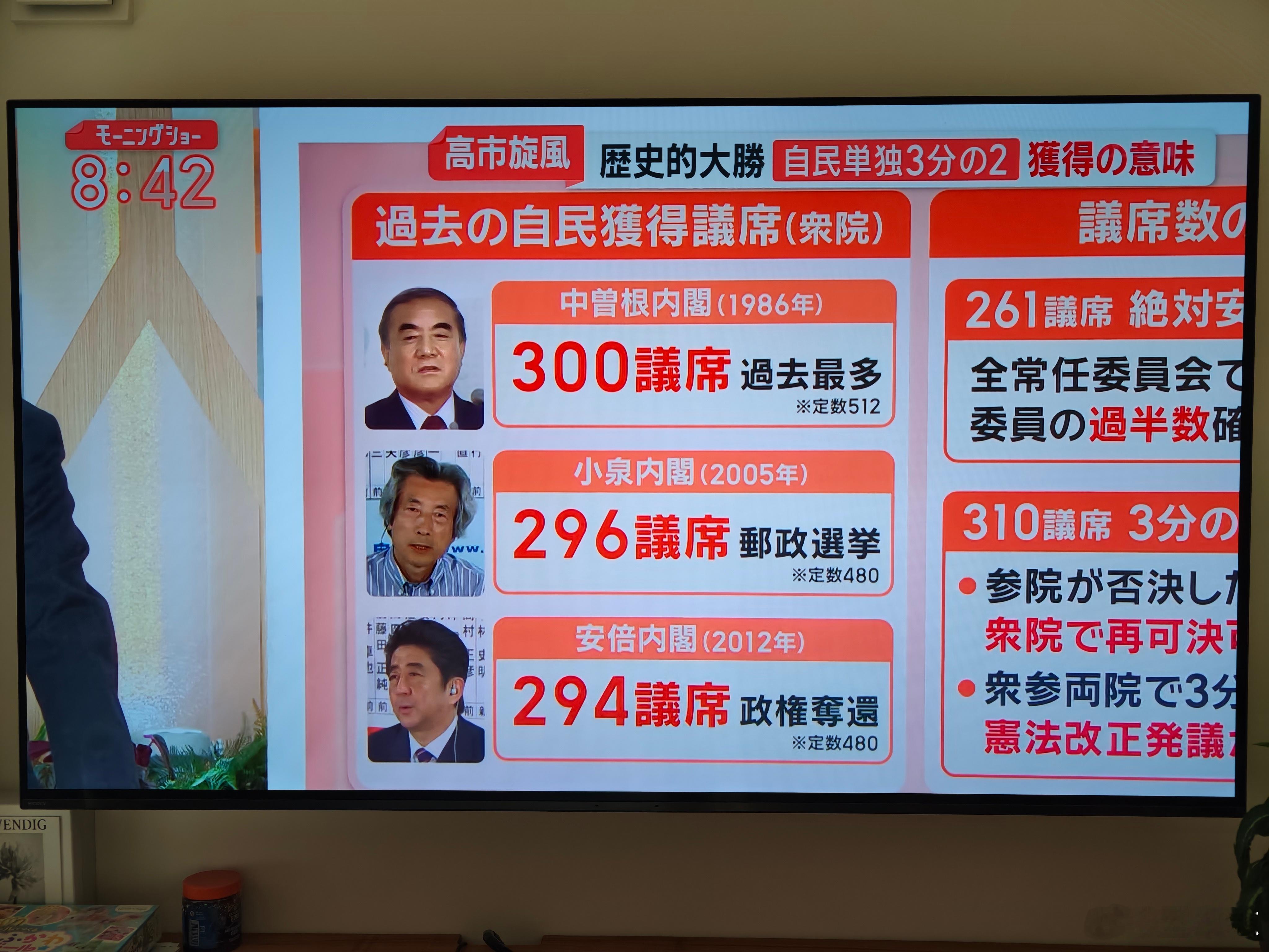 日本众议院选举结果 316席,超过众议院2/3,等于自民党把未来执政方向盘牢牢握在了手里。历史上自民党最风光的时候,中曾根300席、小泉296席、安倍回归时294席。这次四字妹妹直接干到316席,相当于拥有一把几乎权限全开的万能钥匙。这就有点危险了 日本众议院选举结果