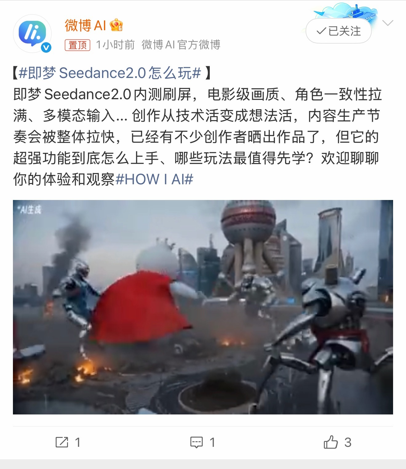 即梦Seedance2.0这波升级真的有点东西,刷到内测反馈,不仅电影感画质拉满,角色一致性也稳了,最绝的是它居然开始懂镜头语言了,有分镜、有节奏,出来的东西自带短视频网感,再也不是以前那种纯素材拼的那种。