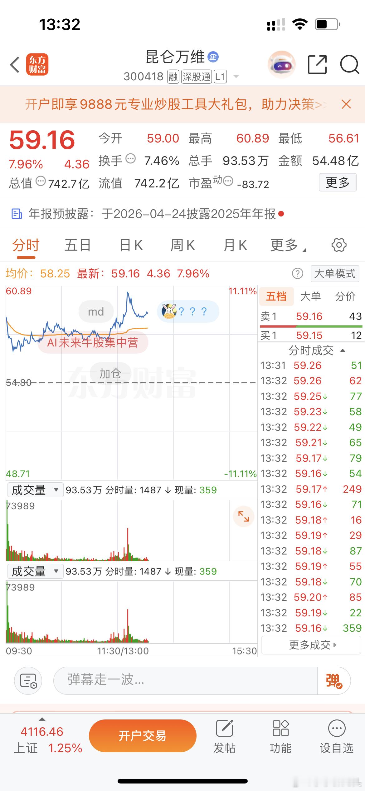 兄弟们我最近有点黑,大家最好不要跟我同步先,你看我昨天踢的昆仑万维,然后接不回了,刚刚最高11个点!这波操作没谁了!小趴菜莎莎