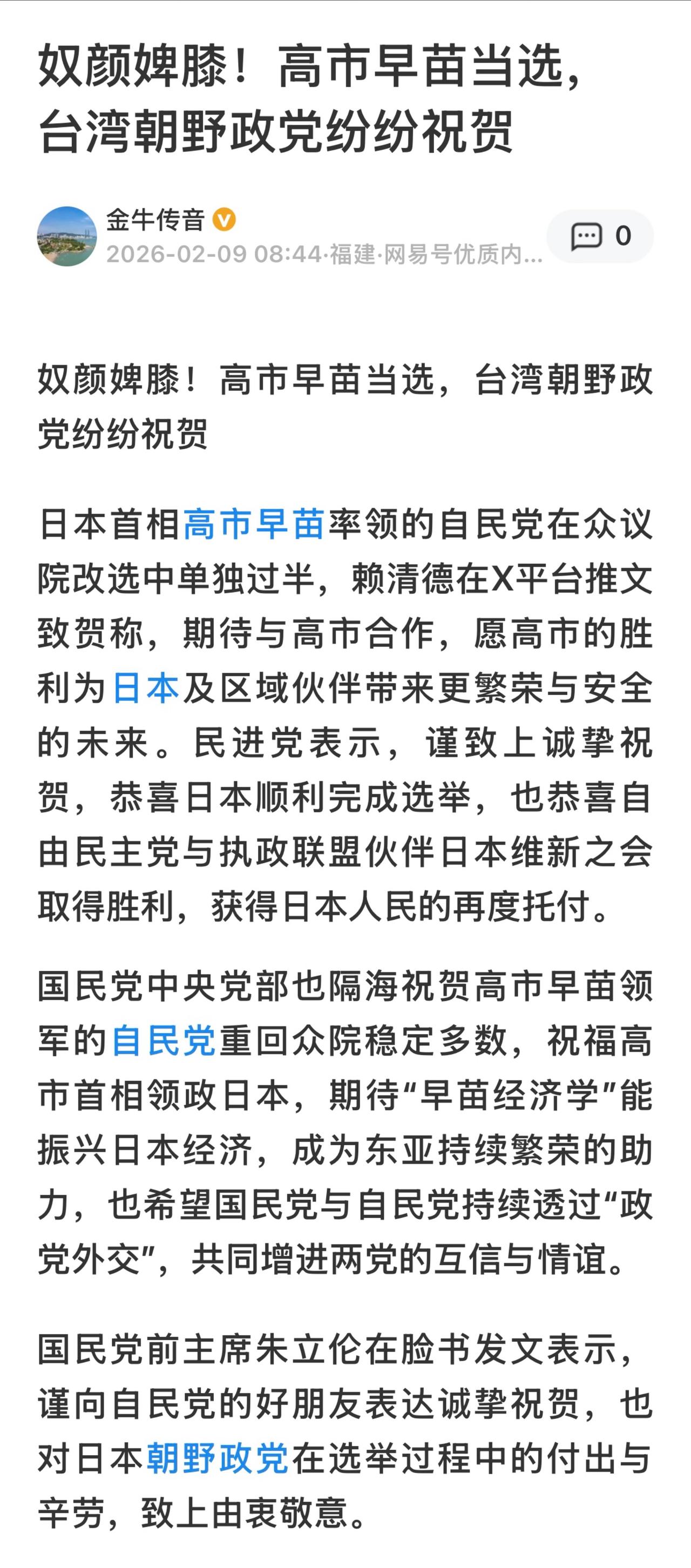 美国总统特朗普对日本众院选举中自民党取得压倒性胜利表示欢迎,并向首相高市早苗表达祝贺。 美财长贝森特盛赞高市早苗在选举中取得“重大胜利”,并宣称一个强大的日本将使美国在亚洲“更加强大”。
