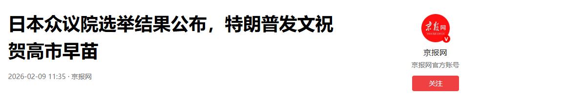 特朗普祝贺高市早苗,高市早苗将继续执政,中国要做最坏准备了 高市早苗赌赢了,特朗普也在第一时间祝贺,美日同盟的这出戏码,终于演到了最后。局势已经彻底明朗,中国要做最坏的打算了。 当地时间2月9日凌晨,日本众议院选举结果出炉。没有意外,甚至比预想的还要夸张。现任首相高市早苗率领自民党拿下了“压倒性胜利”,把众议院的多数席位牢牢攥在手里。 胜选的消息刚收到,高市早苗的电话就打给了特朗普。这位被视为“日本铁娘子”的政客,第一时间向特朗普“报喜”。特朗普的反应也是迅速,直接在社交媒体上发文,给这位“忠实盟友”撑腰打气。 看看特朗普是怎么说的,字里行间全是政治算计。他把高市称为“备受尊敬和欢迎的领导人”,更是盛赞她解散众议院提前大选的豪赌是“大胆而明智”的。在他看来,高市早苗不仅赢了,还赢得很漂亮,这笔政治投资回报丰厚。 特朗普还明确表示愿意为高市早苗及其执政联盟“背书”,并许下了“永远强力支持你”的承诺。这不光是客套,更是给日本右翼势力发出的“通行证”。特朗普希望看到的,就是一个继续推行右翼保守路线的日本。 最值得警惕的,是特朗普提到的“以实力促和平”。这是他外交政策的信条,现在他把这套逻辑套用在了日本身上。表示美国完全支持日本扩充军力,支持日本在军事上“大干一场”。 有了美国的撑腰,高市早苗在国内的统治基础将前所未有的牢固。接下来不难猜测,修改《和平宪法》将快速进行,那个束缚日本多年的战后体制,恐怕要被彻底打破了。 甚至连“无核三原则”这种红线,未来都可能被触碰。日本追求所谓的国家“正常化”,实际上就是军力重新崛起。可以说,日本整体向右转已经无法避免,军国主义重新抬头的风险,大概率已成定局。 为什么特朗普要这么做?别被表象迷惑了。看看美国在西半球的动作,绑架委内瑞拉总统马杜罗,威胁古巴。特朗普的算盘打得很精,他的首要目标是确保美国在西半球的绝对霸权。 在亚太方向,美国看似在收缩,实则是换了一种打法。从直接对抗转为“离岸制衡”,美国躲在幕后煽风点火,把日本推到第一线去当炮灰。在特朗普眼里,日本就是遏制中国的最佳“马前卒”。 这种“以实力促和平”的政策,本质上就是释放日本的军事潜力,替美国分担压力。 美日对华政策将从过去的“保持距离”转变为紧密的“合流”。高市政府必将打着应对“中国威胁”的旗号,大张旗鼓地搞扩军。 中国周边将面临更多的军事挑衅,麻烦只会越来越多。所以说,局势已经十分明朗,我们不能再有任何侥幸心理,必须做好“最坏的准备”。 但特朗普可能忘了一件事,玩火者必自焚。日本右翼的全面崛起,威胁的不光是中国,更是所有亚洲受害国。历史的教训就在那里,军国主义一旦复辟,它是没有理智可言的。 别忘了,当年击败日本帝国的也有美国。日本右翼心底的复仇对象,难道仅仅是中国吗?特朗普试图利用日本牵制中国,最终很可能面临日本“噬主”的风险。