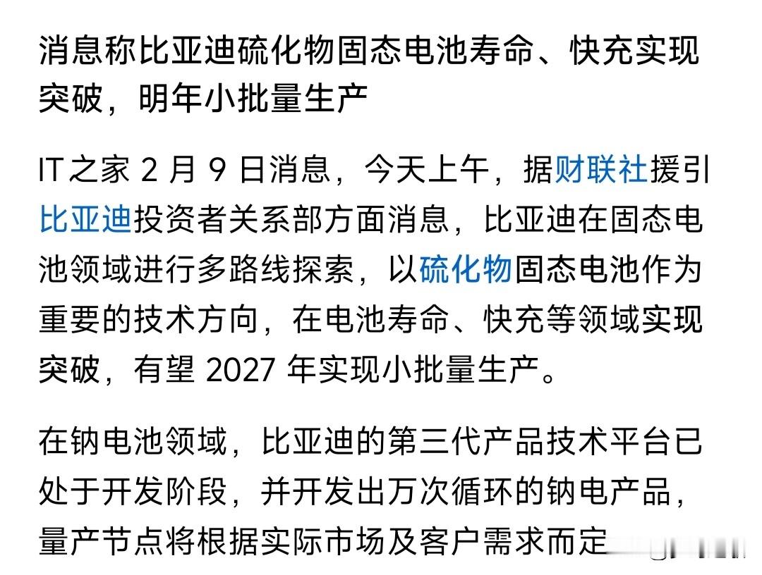 比亚迪又出黑科技股,固态电池研发成功,明天批量生产