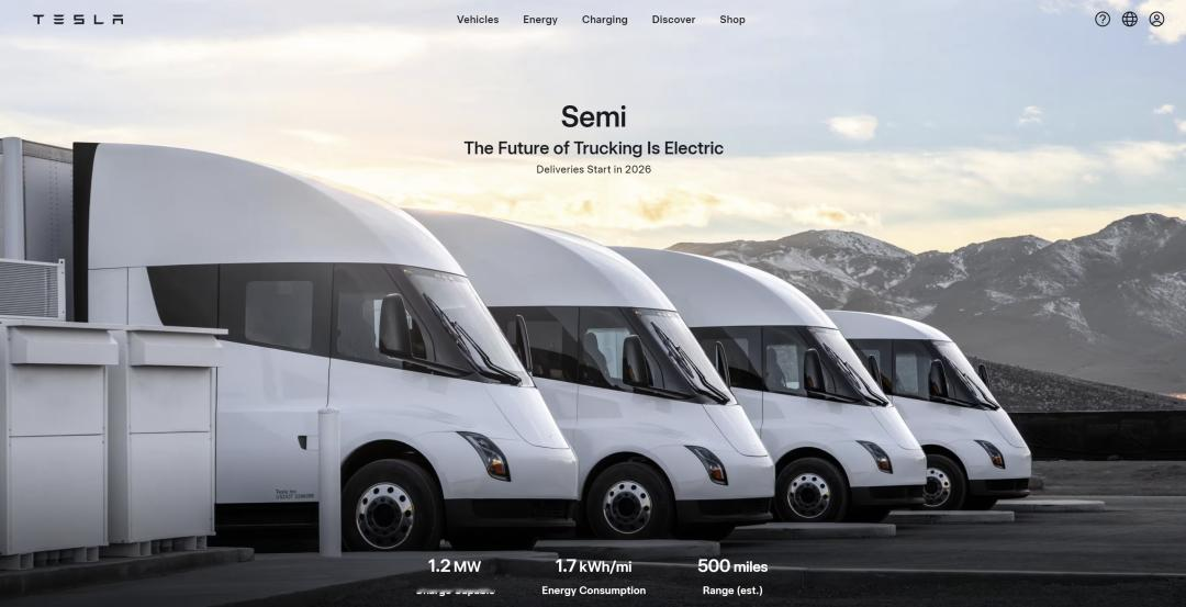 据悉,特斯拉官网上架了全新车型,卡车Semi,官网上显示,将在2026年交付。