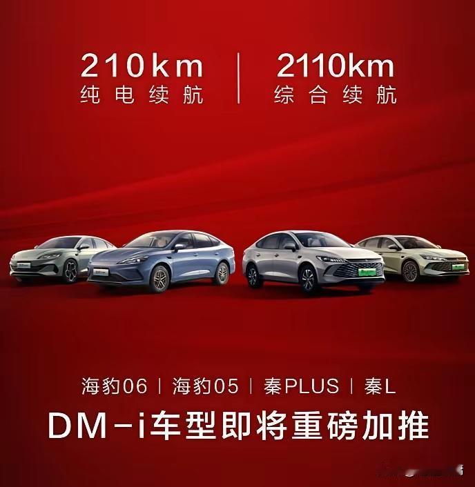比亚迪这波210km纯电续航,直接把10万级家轿给卷麻了 比亚迪又搞事了,这次直接把插混车的纯电续航干到了210公里,还把海豹06、海豹05、秦PLUS、秦L这几款车的DM-i版本都安排上了,综合续航更是干到了2110公里,这消息一出来,感觉整个10万级家轿市场都安静了。 以前买插混,说白了就是图个油电两用的安全感,市区用电、长途用油。但纯电续航大多也就百八十公里,说够吧,每天通勤、买菜代步好像能凑合用,可稍微跑远点就得找充电桩,还得掐着表算电量;说不够吧,又比纯油车省点钱,用得那叫一个拧巴,总觉得差那么点意思。 现在好了,210公里。你琢磨琢磨这个数,这已经不是“凑合用”的级别了。 对大多数人来说,一天通勤来回也就三四十公里,210公里纯电续航,满电一次,一周上下班代步都不用碰充电桩,甚至周末带家人去周边玩,来回一百多公里也完全不用慌。就算忘了充电,还有油混兜底,根本不用担心里程焦虑。 而且这次加推的还是海豹06、海豹05、秦PLUS、秦L这些走量主力,本身就扎根在10万级家轿市场,现在把纯电续航拉到210公里,等于直接把“市区纯电代步,长途油混兜底”的体验拉满了。 以前大家纠结插混还是纯电,现在比亚迪直接给你一个“成年人全都要”的选项。这波操作下来,别说同级别的竞品了,就连不少纯电车都得掂量掂量自己的竞争力。 只能说,比亚迪这是把插混的“混”字玩明白了,以后再有人问10万级家轿怎么选,恐怕答案会越来越统一。