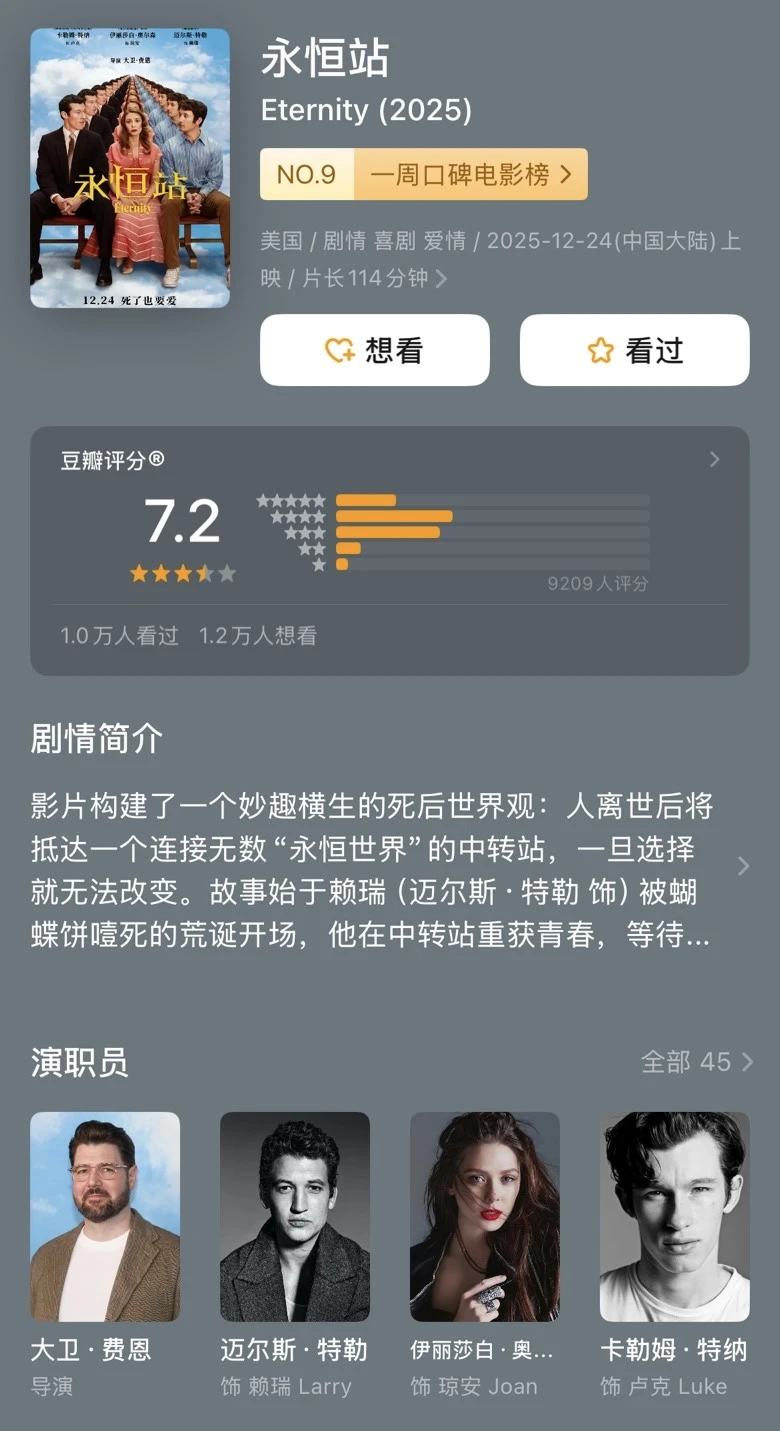 最近挖到一部圣诞档的小众爱情喜剧《永恒站》 豆瓣7.2分,居然没什么人知道! 大概是被年底各种大片淹没了,排片少得可怜… 但!女主竟然是“复仇者联盟”里的红女巫 颜值演技双双在线,温柔又带点神秘感💫 喜欢她的话,千万别错过这部低调好片🎬